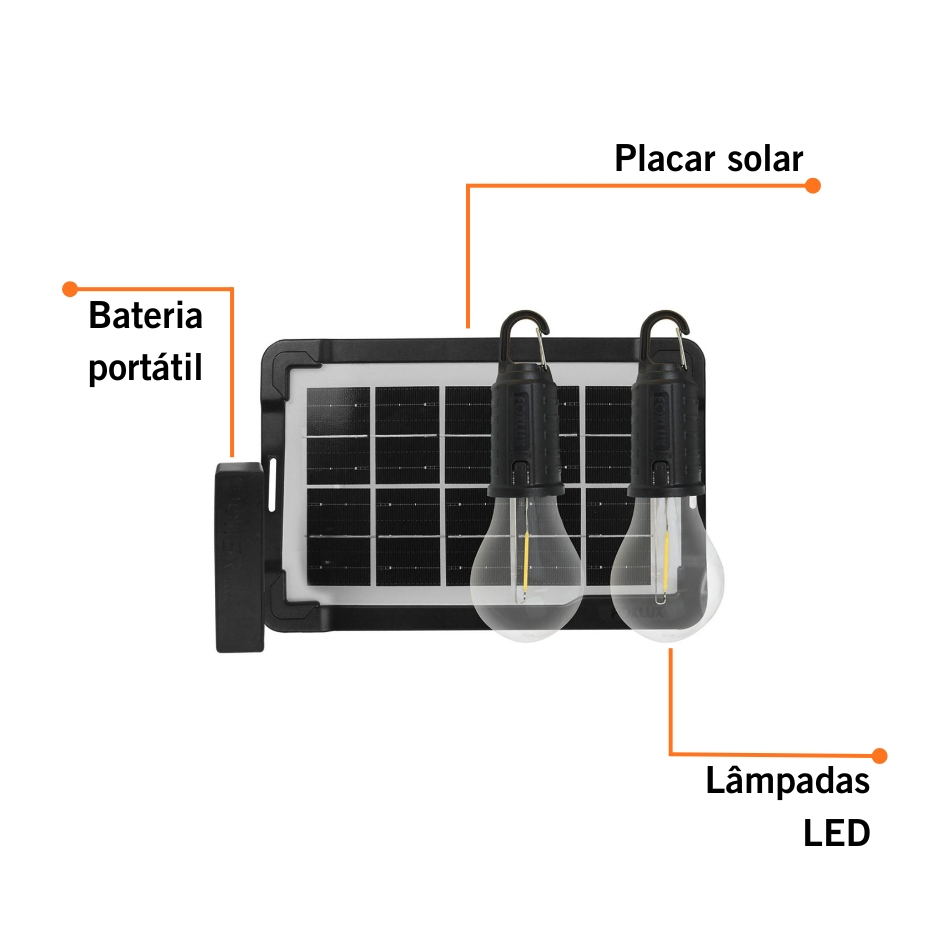 Kit LED Solar Portátil Foxlux com 2 Lâmpadas e Carregador USB — Iluminação Sustentável