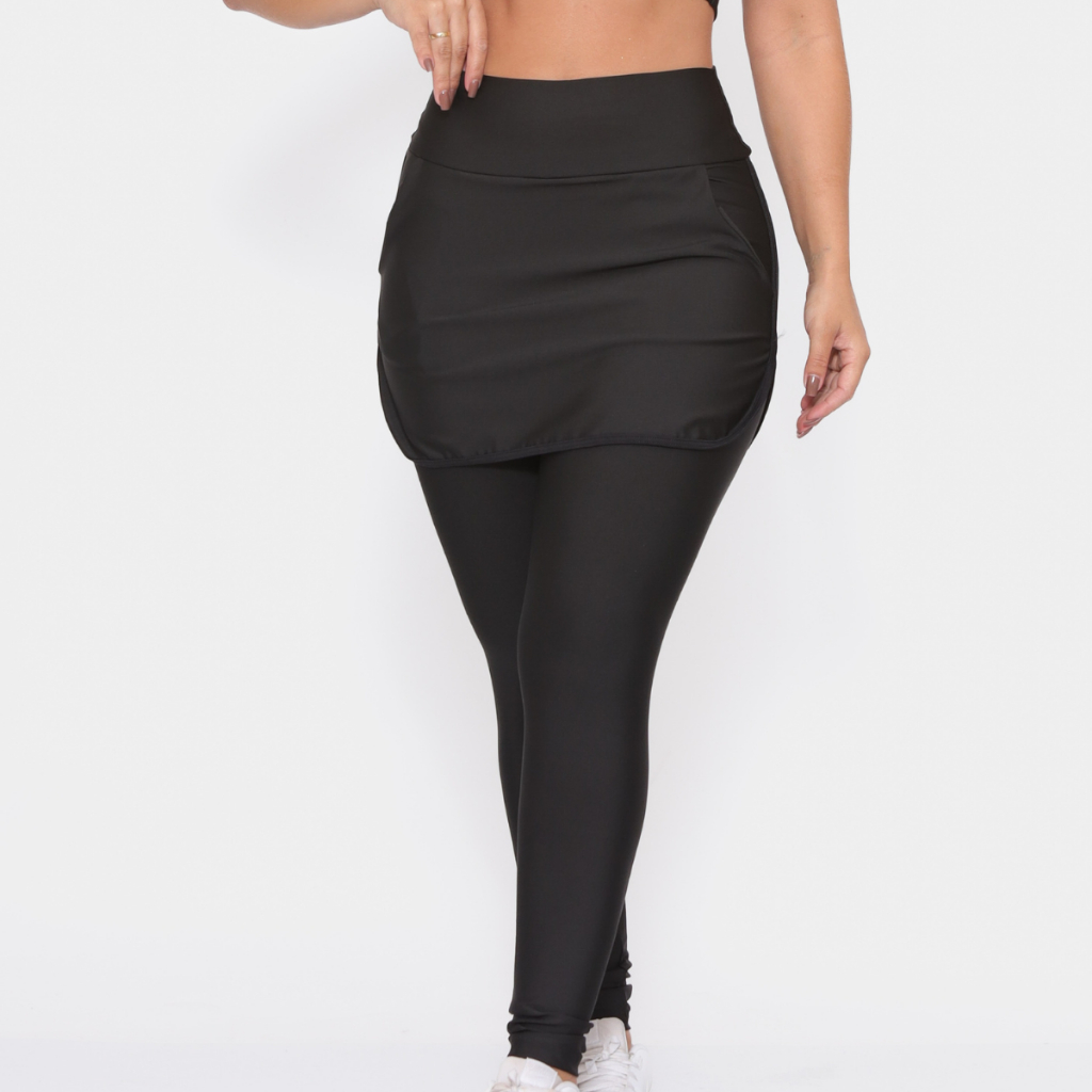 Kit Legging Calça Moda Evangélica Fitness Com Saia 2 Unidade