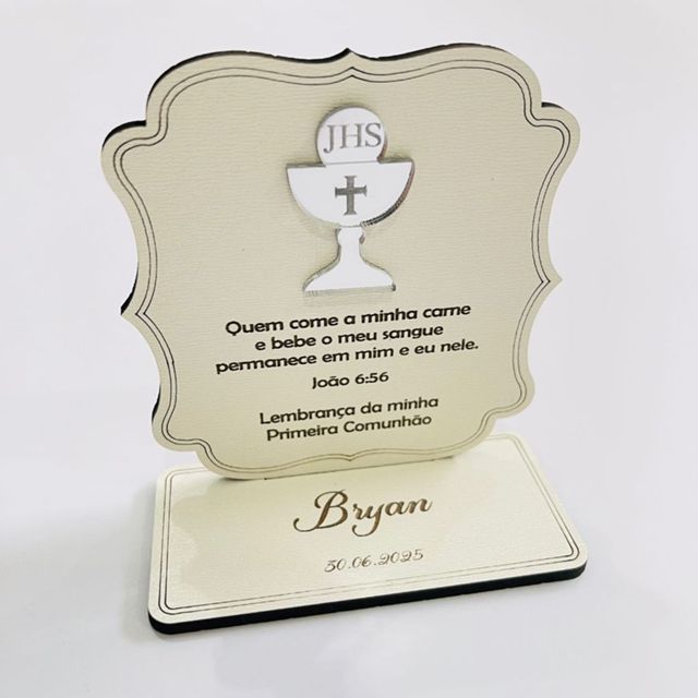 Kit Lembrancinha Primeira Comunhão Eucaristia Personalizada em MDF com Acrílico Espelhado