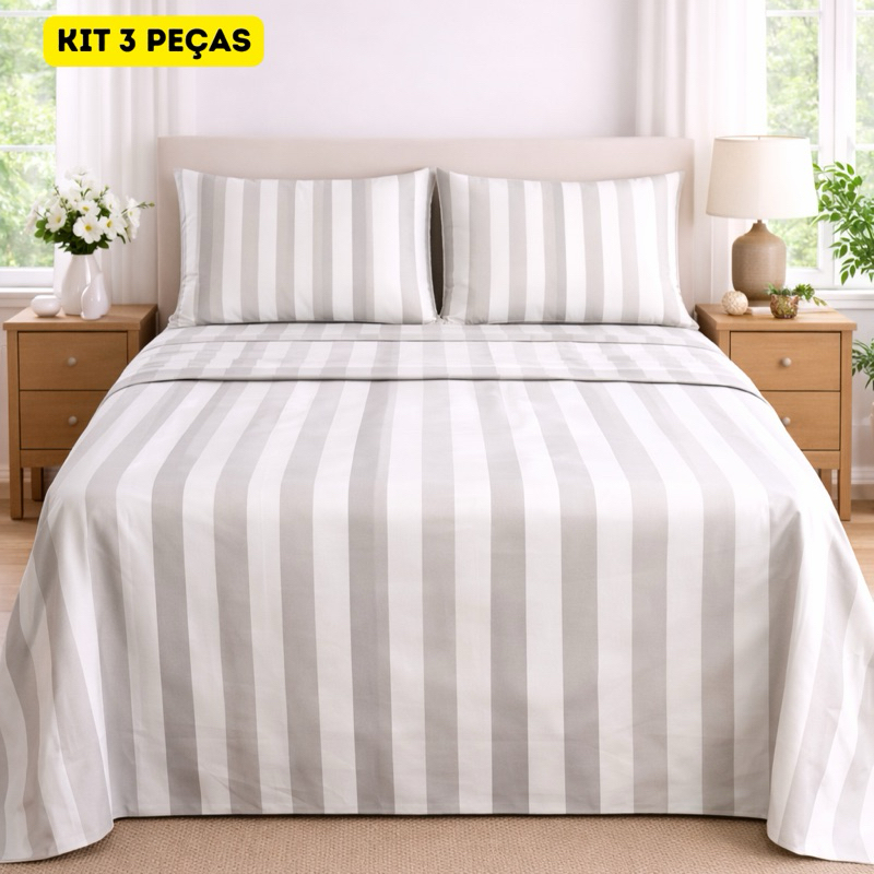kit Lençol 3Pçs Percal 450 Fios Casal Queen Linha Luxo Premium