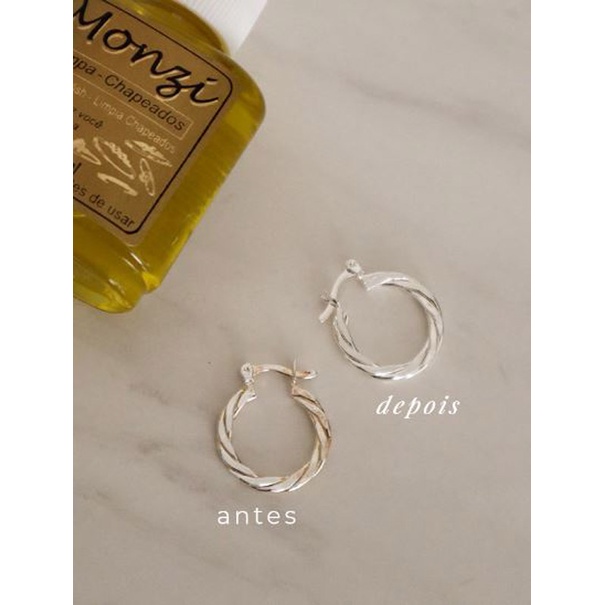 Envio Imediato. Em até 12 horas! Descrição do produto: O Limpa Chapeados Monzi é um produto específico para limpar semijóias e fácil de usar. ATENÇÃO PARA O MODO DE USAR! Modo de Usar: – Passe o Limpa Chapeados Monzi na semijóias banhada folheada ou Cobre utilizando algodão. – Enxágue em água corrente e enxugue bem com uma flanela mágica. Descarte o algodão. – Para objetos maiores, utilize um recipiente de vidro ou plástico com imersão da peça por 10 SEGUNDOS APENAS. – Lave bem o recipiente utilizado.– Descarte o produto usado em água corrente.– Não risca e nem desgasta a prataria.– Limpa Pratas Monzi retira a oxidação e a gordura, deixando ainda, uma camada de proteção no objeto.