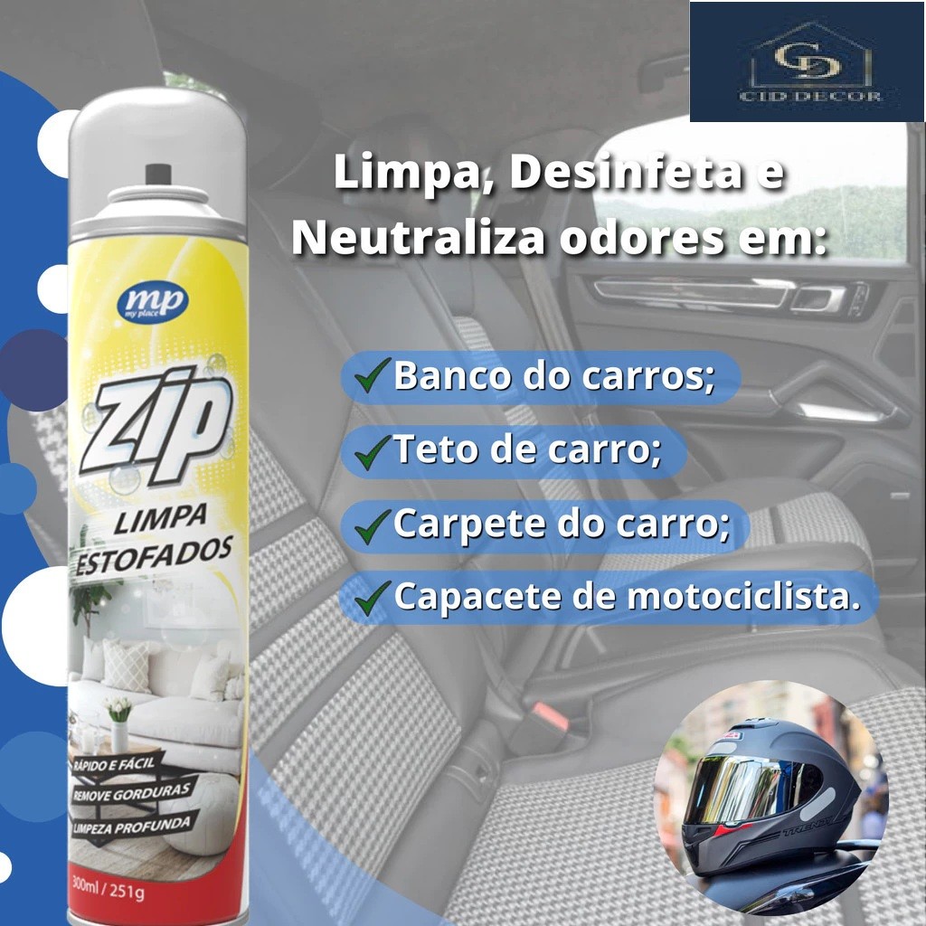 Mais uma solução que a CidDecor está trazendo ao conforto do seu lar. Aquela marca antiga, soluções novas. O KIT CONTÉM: 01 Limpa Estofado My Place 01 Espuma Desengordurante My Place ZIP CLEAN ESPUMA DESENGORDURANTE tem o poder de acabar com a gordura e sujeira sem esforço. Indicado para limpeza de fogões, coifas, grelhas, exaustores, mármores, paredes, pias, azulejos cerâmicos e esmaltados. Zip Desengordurante – Poder de Limpeza Intensivo Mantenha seus ambientes impecáveis com o Zip Desengordurante, o aliado definitivo na luta contra a gordura e sujeira. Formulado com ingredientes de alta eficácia, o Zip Desengordurante elimina até os resíduos mais difíceis, proporcionando uma limpeza profunda e sem esforço. Ideal para cozinhas, fogões, exaustores e superfícies de difícil remoção. Características: Fórmula Avançada: Remove a gordura e a sujeira com rapidez, sem precisar esfregar excessivamente. Versatilidade: Perfeito para uma ampla gama de superfícies, incluindo aço inoxidável, vidro e cerâmica. Ação Rápida: Age rapidamente, economizando tempo e esforço na limpeza. Segurança: Testado e aprovado para uso seguro em diferentes ambientes. Modo de Uso: Agite bem o frasco antes de usar. Aplique uma quantidade generosa do produto na superfície desejada. Deixe agir por alguns minutos. Limpe com um pano úmido ou esponja. Enxágue bem a superfície se necessário. Precauções: Mantenha fora do alcance de crianças. Evite o contato com os olhos e a pele. Em caso de contato, enxágue imediatamente. Teste o produto em uma pequena área antes de usar em toda a superfície. Conteúdo: 300 ml Zip Desengordurante – A força da limpeza que você confia, com a praticidade que você precisa. ZIP LIMPA ESTOFADOS O Zip Limpa Estofados foi desenvolvido para melhorar a eficiência na limpeza a seco. Remove sujeiras profundas e difíceis, como gorduras, entre outros. Aplicações: Limpeza de sofás, tapetes e colchões Pode ser utilizado em veículos, estofados, tetos e carpetes Remove facilmente sujeiras incrustadas. Modo de Uso: Agite bem antes de usar. Mantenha a embalagem na posição vertical e pulverize sobre a superfície desejada. Aguarde 5 minutos para o produto agir. Remova com um pano úmido ou esponja. Precauções: Evite o contato em animais, plantas e superfícies aquecidas. Não pulverize sobre alimentos ou utensílios de cozinha...