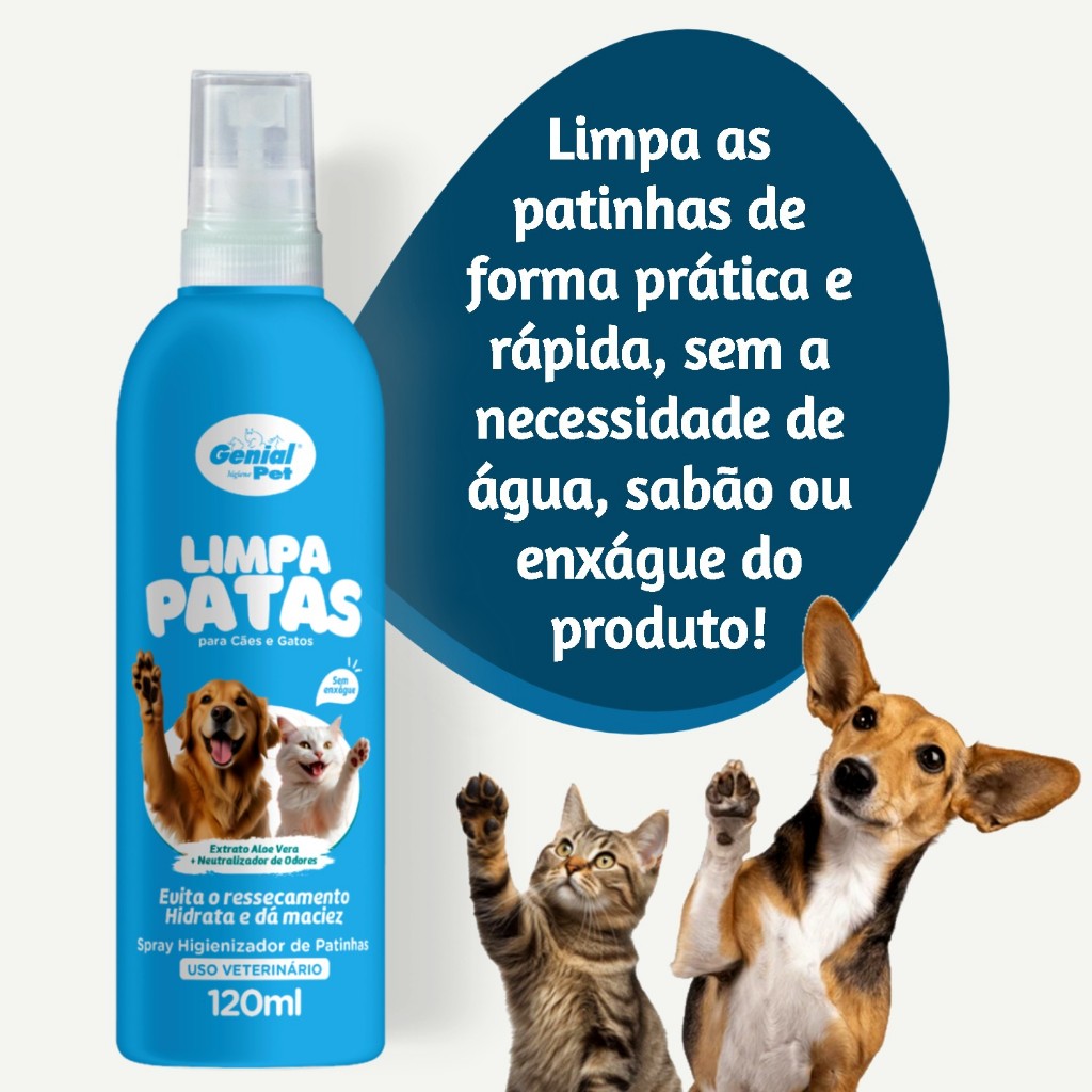 O Limpa Patas Genial Pet é um produto prático e eficaz para limpar as patas de cães e gatos. Ele é formulado para remover sujeira, evita o ressecado, hidrata e promove maciez Características do produto: - Fórmula suave e não irritante para a pele das patas - Remove sujeira, poeira e outros resíduos das patas - Deixa as patas limpas hidratadas sem ressecamento - Fácil de usar e aplicar - Apresentação em frasco spray de 120ml Benefícios: - Ajuda a manter as patas do seu pet limpas e saudáveis - Remove sujeira e resíduos que podem causar desconforto ou infecções - Hidrata deixa as patinhas macias e sem ressecamento - Suave e não irritante, ideal para patas sensíveis - Pode ser usado regularmente para manter as patas do seu pet limpas e hidratadas Modo de uso: - Aplique o Limpa Patas Genial Pet nas patas do seu pet - Massageie suavemente para remover sujeira e resíduos - Limpe com um pano macio ou papel toalha - sem enxague Dicas adicionais: - Use o Limpa Patas Genial Pet regularmente para manter as patas do seu pet limpas e saudáveis. - Combine o uso do Limpa Patas com outros produtos de cuidado com a pelagem para obter resultados ainda melhores. 1 HIDRATANTE GENIAL PET PATAS E FOCINHOS – 70 g - Indicado para cães e gatos de todas as idades e de todos os portes; - Elaborado com D-pantenol e extrato de aveia; - Conta com composição segura e suave, sem essência e feito com ativos naturais. - Volume produto: 70g - Hidratação das patinhas e focinhos de cachorros e gatos. - Previne rachaduras. - Evita Ressecamentos. - Não agride o animal. - Indicado para cães e gatos. Informações Técnicas: Produtos: Hidratante de Patinhas e Focinhos para Cães e Gatos Genial Pet Marca: Genial Pet Animal: Cachorros e Gatos Porte: Todos Raça Específica: Não Sexo Específico: Não MODO DE USAR Hidratante de Patinhas Genial Pet – Após limpar, aplique suavemente com as mãos, massageie até a dissolução do produto nos coxins das patinhas. e focinhos. PRECAUÇÕES Uso externo. Evite contato com os olhos e mucosas do animal. Manter em local fresco e seco, fora do alcance de crianças e animais domésticos. Caso houver a constatação de hipersensibilidade, suspender o uso. Não utilizar em filhotes com menos de 3 meses de vida. Manter longe de alimentos, medicamentos e produtos domésticos ou de higiene pessoal. A Genial Pet é especialista em produtos de higiene, limpeza e beleza para pets. Somos especialistas no mercado pet com experiência no comércio, e amamos o que fazemos. Produtos em estoque, com envios todos os dias, para todo Brasil. Entrega rápida segura.