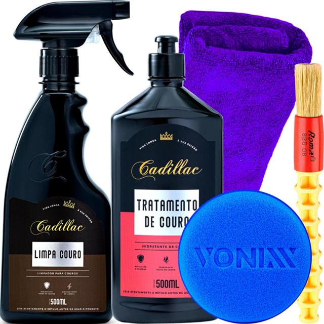 Kit Limpador de Couro + Hidratante Tratamento de Couro 500ml Cadillac + Pano + Pincel + Aplicador