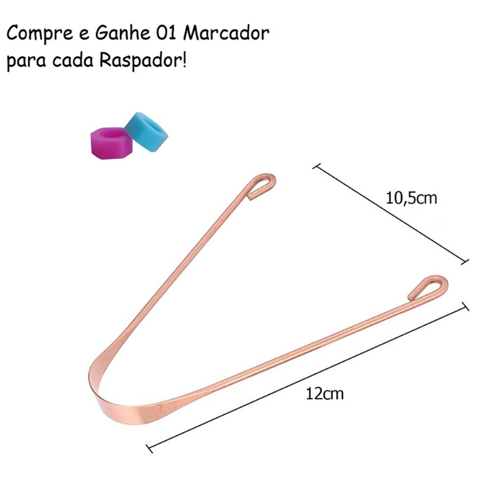 Este produto será utilizado TODOS OS DIAS, preste Atenção à Qualidade que vai Adquirir. Compre e Ganhe 01 Marcador de Silicone a cada Unidade que Adquirir! Melhor Oferta para 12 UNIDADES de Raspador de Língua de Cobre (Modelo Indicado Pelos Profissionais) Para a Raspagem e Eliminação das Toxinas da língua. Elimina bactérias e toxinas em 10 segundos: Melhora o Mau Hálito, a Digestão e a Sensibilidade ao sabor dos alimentos. Recomendado pelo Ayurveda, Dentistas e demais Profissionais da Saúde. Para que serve o Raspador de Língua: Conforme estudos da Ayurveda que é a medicina tradicional da Índia, enquanto dormimos nós liberamos uma substância com toxinas que se acumula na parte superior da língua formando uma crosta esbranquiçada. O raspador de língua é utilizado para eliminar esta substancia do nosso corpo. Por Que de Cobre? O cobre tem poderosas propriedades antibacterianas. Ele não apenas mata as bactérias "ruins" da boca, mas permite que as bactérias "boas" saudáveis floresçam. Por isso é tão importante que o seu Raspador de Língua seja REALMENTE de Cobre para garantir a Segurança Antibacteriana do seu Dia-a-Dia. Benefícios: - Funciona como um detox natural, eliminando as toxinas acumuladas na língua durante a noite; - Ajuda a eliminar bactérias que se formam na língua durante a noite, além de promover um hálito mais fresco; - Com a raspagem, aumenta-se o percepção sensorial dos sabores, que são sentidos na língua, ajudando também no processo digestivo que começa pela boca; - Melhora a digestão e o funcionamento do intestino. Como utilizar o seu raspador de língua? A raspagem de língua deve ocorrer 1 vez ao dia ao acordar antes mesmo de beber água e escovar os dentes. Para usar, basta segurar as duas alças (pontas) e puxar o raspador com suave pressão da parte de trás, para a ponta da língua. Você vai observar que uma substancia branca (toxinas/muco) vai acumular no raspador. Enxague o raspador a cada vez que você for passá-lo. Depois basta enxaguar a boca e seguir com a sua rotina normal de higiene. Além disso, você estará recebendo um marcador colorido para seu raspador para identificar qual é o seu, e não correr o risco de trocar com o de outra pessoa, já que os raspadores de cobres podem ser iguais. O Que Estou Comprando? 06 UN. - 06un Raspador de Língua de Cobre + 06 marcadores coloridos. OU 12 UN. - 12un Raspador de Língua de Cobre + 12 marcadores coloridos. Produto NOVO (ORIGINAL). Somos Distribuidores Diretos da Importação Brasileira - Compre Com Segurança, Garantia e Preço no Atacado. BAKSHOP