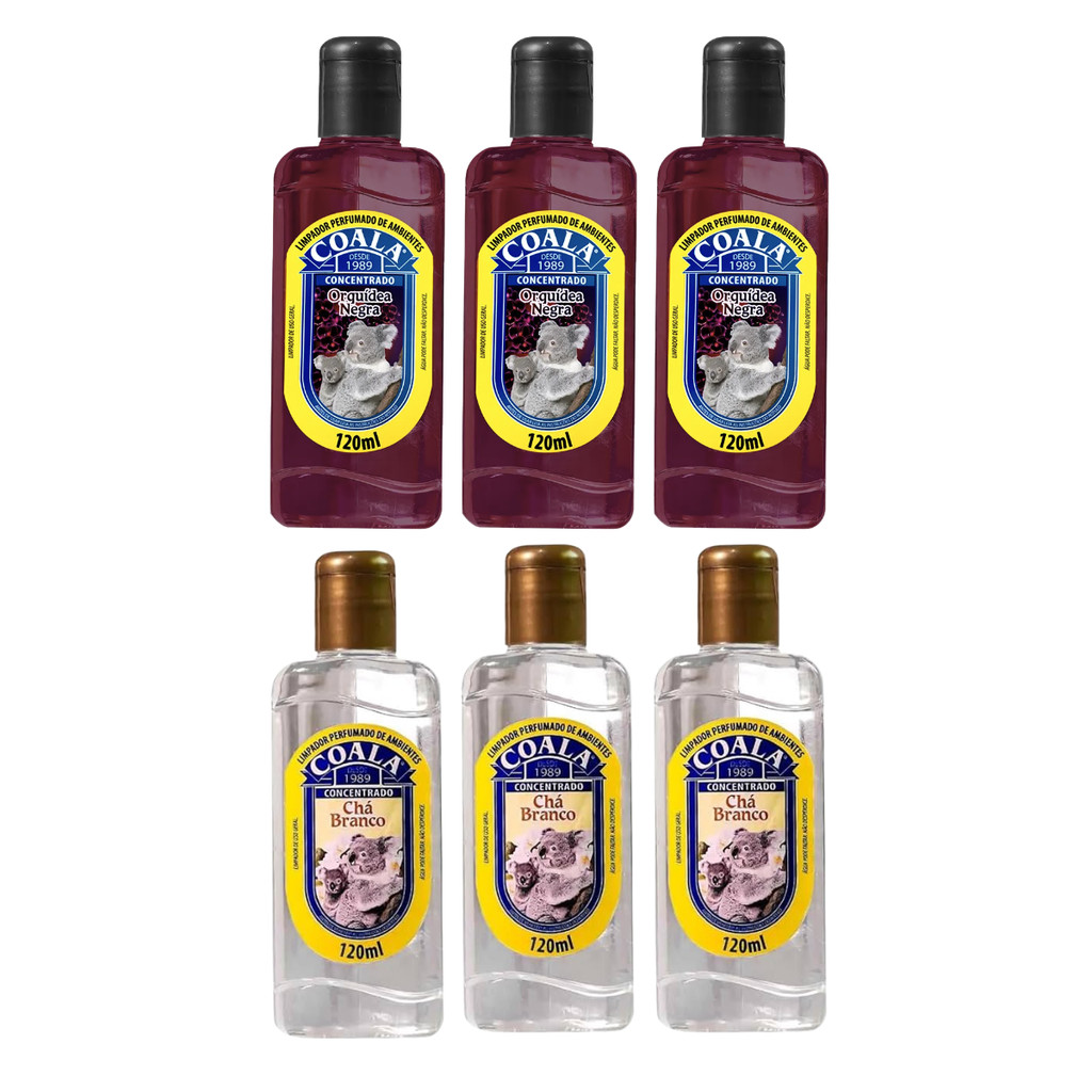 KIT LIMPADOR PERFUMADO COALA: 3 CHÁ BRANCO + 3 ORQUÍDEA NEGRA 120ML
