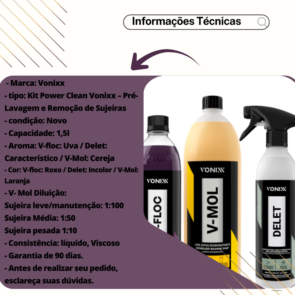 Kit Limpeza Automotiva Vonixx Alto Desempenho Para Sujeira Pesada Com V-Mol V-Floc e Delet