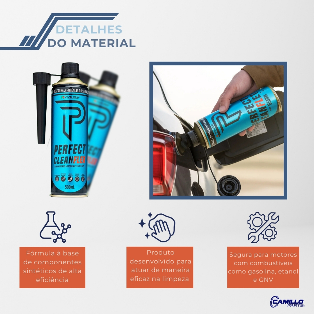 PRODUTO NOVO Quer limpar e proteger seu motor de motocicletas e veículos flex? Características do Produto – Kit com 1 Perfect Clean Moto e Linha Náutica 250 ml + 1 Perfect Clean Via Tanque Flex 500 ml – Limpeza de sistema de alimentação, admissão e câmara de combustão – Remove e dissolve carvão, borras e incrustações – Reduz consumo excessivo de combustível – Previne falhas ocasionadas por combustível adulterado – Indicado para motocicletas carburadas ou injetadas e motores ciclo Otto Por que escolher este produto – Mantém o motor limpo e eficiente – Previne quebras de válvulas e riscos nas camisas dos cilindros – Evita obstrução de catalisadores – Protege motores de combustíveis adulterados – Produto confiável e de fácil aplicação via tanque Dicas de Uso – Agite bem os frascos antes de aplicar – Em caráter corretivo, adicione todo o conteúdo no tanque, respeitando a capacidade máxima de combustível indicada – Em caráter preventivo, utilize periodicamente conforme instruções do fabricante – Ideal para motocicletas, veículos flex e motores náuticos ciclo Otto Perguntas Frequentes – Para quais tipos de motores este kit é indicado? Motocicletas carburadas ou injetadas, motores ciclo Otto e veículos flex. – Como aplicar o produto no tanque? Agite o frasco e adicione todo o conteúdo no tanque, respeitando a capacidade máxima de combustível. – O uso prejudica peças ou componentes do motor? Não, o produto é desenvolvido para limpar e proteger o motor sem causar danos. – Com que frequência devo usar preventivamente? Utilize periodicamente, conforme a quilometragem e recomendações do fabricante. Mantenha seu motor limpo e eficiente com o Kit Perfect Clean Koube.