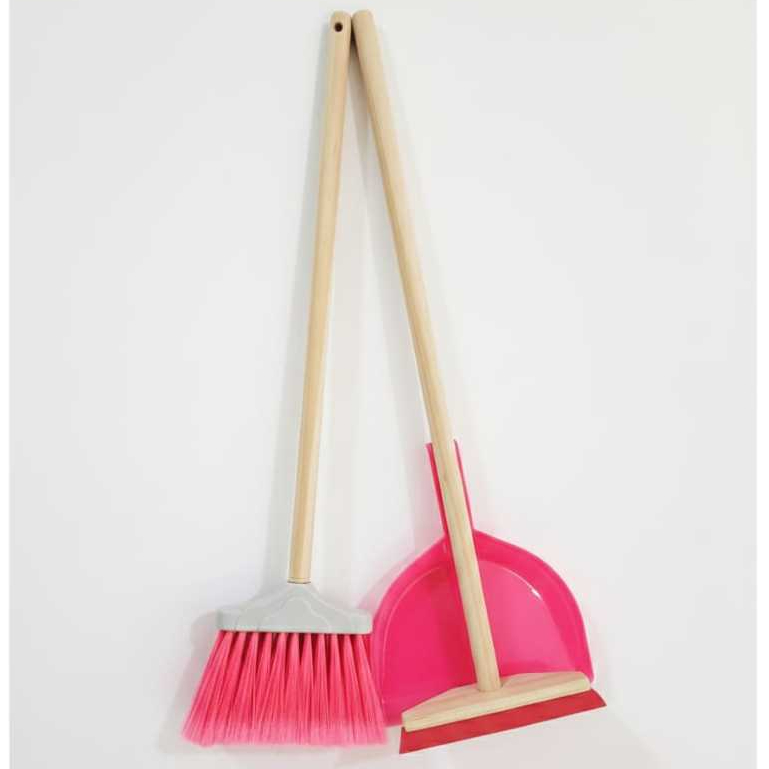 Kit Limpeza Infantil Vassoura Rodo Pazinha Cabo Madeira Brinquedo Educativo Criança