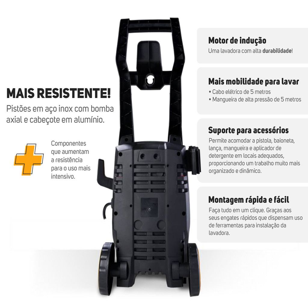 Kit Limpeza Lavadora de Alta Pressão 1700W Potente E Aspirador Água e Pó Com Rodas Soprador WAP