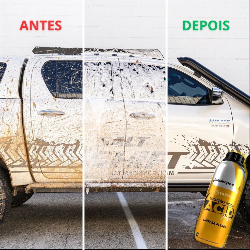 KIT CONTÉM: 1- ACID PRO 1,5L 1- IZER 500ML 1- ESPONJA AZUL YAMASE ACID PRO 1L AUTOLIMPE: Solução ácida, de uso profissional, para limpeza pesada de equipamentos industriais, chassis, peças metálicas, betoneiras, usinas de concreto, pós obra, pisos, pedras rústicas ou porosas, bordas de piscinas, cerâmicas, mármores, granitos e artefatos que contenham sujidades pesadas e incrustadas. Pode ser utilizado em máquinas e equipamentos pesados, vagões especiais de transporte em minas subterrâneas, caminhões betoneiras, decapação de chapas, desincrustação de alumínios, pode ser aplicado em concreteiras, mineradoras, metalúrgica de gusa e etc. Este produto é um desincrustante de alto desempenho, ideal para remoção de: Resíduos de Cimento e Concreto (Limpeza pós-obra) Incrustações minerais, ferrugem e oxidações. Sujeiras pesadas em: Chassis e peças metálicas Equipamentos industriais e maquinários pesados. Betoneiras e usinas de concreto. Pisos e pedras rústicas ou porosas (NÃO UTILIZAR em polidos). Bordas de piscinas e cerâmicas não esmaltadas. Diluir o produto em água na proporção de 01 litro de produto para até 05 litros de água dependendo do nível de sujidade. Aplicar ou pulverizar a solução diluída na superfície. Deixar agir por alguns minutos e enxaguar em seguida com jato d’água até a remoção total do produto. No caso de sujidades mais pesadas e de difícil remoção, pulverizar com o desincrustante ácido HFX 10000 menos diluído, acrescido do desengraxante alcalino DX 10000, após isso, enxaguar. Recomendação Pós-Ferrugem: Após remover a ferrugem, é essencial aplicar um produto anti-corrosivo para evitar que a ferrugem retorne e proteger a superfície contra novos processos de oxidação (como verniz de motor). DESCRIÇÃO IZER: Izer é um descontaminante ferroso de pH neutro que remove fuligem de freio oxidado em rodas, age na eliminação de oxidação de material ferroso da pintura e demais partes externas do veículo e ajuda na remoção de pontos de ferrugem em partes cromadas. No motor, auxilia na remoção da oxidação de partes metálicas, deixando-o com aspecto renovado. O produto não é indicado para uso em superfícies zincadas MODO DE USO: 1. Certifique-se que a superfície esteja fria 2. Pulverize uma pequena quantidade de produto na superfície a ser descontaminada 3. Aguarde de 2 a 3 minutos e observe a formação de uma cor roxa ou mais escura 4. Com o auxílio de escova para caixas de rodas, pincel para detalhamento ou luva de microfibra, esfregue de maneira uniforme para ajudar na completa remoção dos contaminantes 5. Enxágue em seguida com a ajuda de uma lavadora de alta pressão