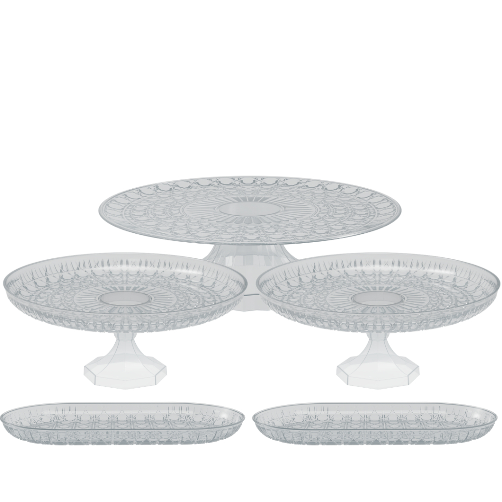 Kit Linha Lapidada com 1 Boleira lapidada 32 cm, 2 Boleiras Lapidadas 24 cm, 2 bandejas lapidada
