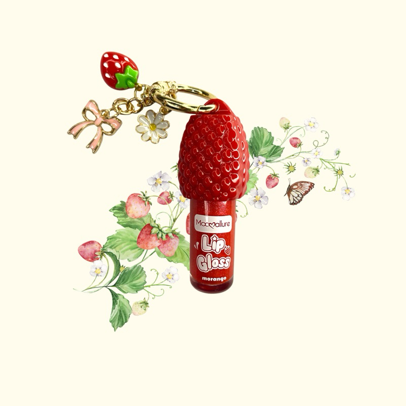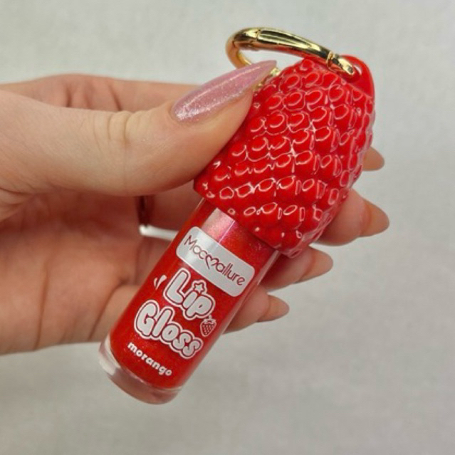 kit Lip Gloss Labial morango - Chaveiro Fofo Pequeno Presente Feminino