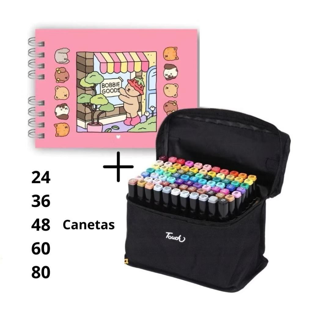 Kit Livro De Colorir Capa Dura 50 Páginas + 6/12/24/36/48/60/80 Cores Caneta Marcadora Com Ponta Dupla