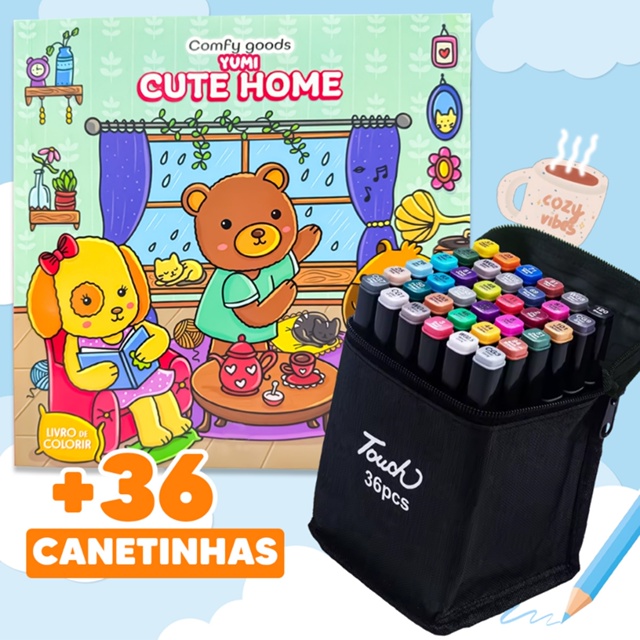 - Envio Ultra-Rápido! Envio em até 4 horas úteis! Kit Especial Livro + 36 Canetinhas + Acetato BRINDE. Liberte sua criatividade em dobro com o Kit Completo "Cute Home Yumi" + 36 Canetinhas Coloridas com Ponta Dupla! **CUTE HOME: A Arte de Colorir o Conforto do Cotidiano!** Em um mundo cada vez mais acelerado, **CUTE HOME** chega como um convite para desacelerar, respirar fundo e transformar momentos simples em instantes de pura calmaria e criatividade. Inspirado no fenômeno dos livros de colorir relaxantes do Tikok, este livro premium é feito para quem ama mergulhar na arte e encontrar conforto nos detalhes do dia a dia. **O que torna CUTE HOME tão especial?** - 24 ilustrações exclusivas retratando cenas cotidianas e aconchegantes, que despertam a criatividade e trazem uma sensação de conforto. - Páginas impressas em papel de alta gramatura, permitindo que você pinte com lápis de cor, canetas e marcadores sem preocupações com manchas ou transferência de tinta. - Página especial para testes de cor e textura, para que você experimente e descubra as melhores combinações antes de aplicar nas ilustrações. - Brinde exclusivo: um acetato protetor para garantir que suas criações fiquem impecáveis enquanto você explora novas páginas. Mais do que um livro de colorir, uma experiência calmante Cada desenho foi pensado para transmitir aconchego, seja uma xícara de chá fumegante, um cantinho confortável da casa ou pequenos objetos que despertam nostalgia. Cute Home é um convite para desacelerar e encontrar beleza nos detalhes do dia a dia. **Por que você vai amar CUTE HOME?** **Criação terapêutica:** Um livro perfeito para aliviar o estresse e estimular a criatividade. **Experiência premium:** Folhas grossas e de alta qualidade para uma pintura suave e sem preocupações. **Toque especial:** Brinde de acetato para proteger suas obras de arte e aprimorar sua experiência. **O presente ideal:** Para quem ama arte, momentos de tranquilidade e aconchego. **Transforme pequenos momentos em grandes experiências!** Com **CUTE HOME**, cada traço se torna uma expressão de criatividade e cada cor um reflexo do seu próprio estilo. **Deixe seu mundo mais colorido e cheio de aconchego—adquira já o seu!** Importante: Ao realizar sua compra, escolha qual dos livros da coleção deseja adquirir. Cada livro é vendido separadamente. Sobre o Envio: A Yumi é a única na Shopee que garante o envio do seu pedido em até 4 horas úteis. Isso mesmo, você faz o pedido e, em pouquíssimo tempo, ele já está a caminho da sua casa! Quando você faz um pedido conosco, garantimos que ele será postado e enviado em tempo recorde. *Para pedidos com pagamento aprovado fora do horário comercial, aos finais de semana, feriados e emendas de feriados, o envio ocorrerá em até 1 dia útil. -É responsabilidade do cliente verificar com atenção o endereço de entrega e o CEP informados durante a compra. Caso haja erro no endereço, a Yumi não se responsabiliza por atrasos ou extravios. -Prazo de Entrega Estimado: O prazo de entrega é estimado e pode variar de acordo com a região e fatores externos. Imprevistos como acidentes graves na região, furto à mercadoria, chuvas fortes, pandemia, greve, entre outros, podem influenciar o prazo de entrega.