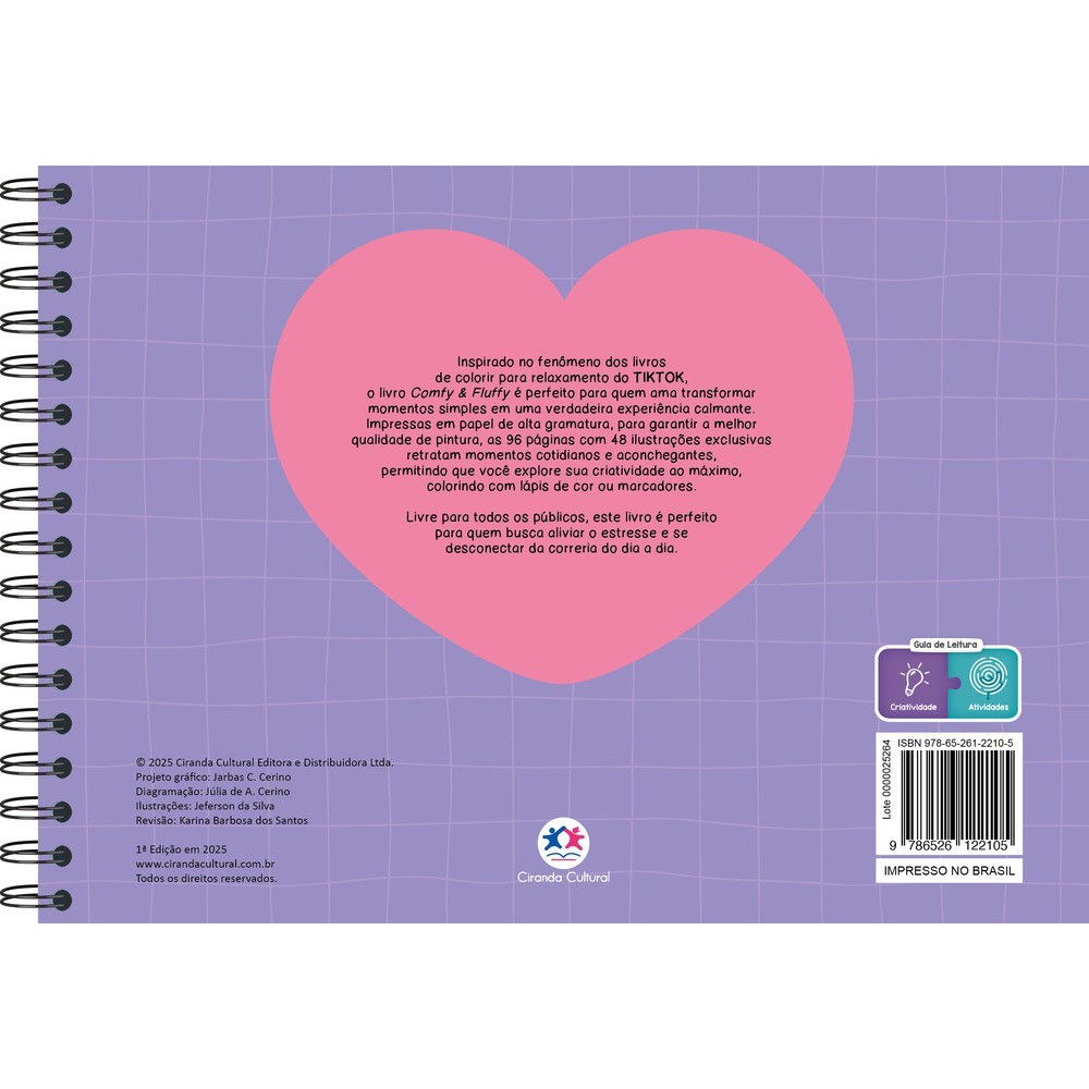 Kit Livros de Colorir - Comfy & cozy Fluffy Inspirado no fenômeno dos livros de colorir para relaxamento do TikTok, é perfeito para quem ama transformar momentos simples em uma verdadeira experiência calmante. Impressas em papel de alta gramatura, para garantir a melhor qualidade de pintura, as 96 páginas com 48 ilustrações exclusivas retratam momentos cotidianos e aconchegantes, permitindo que você explore sua criatividade ao máximo, seja colorindo com lápis de cor ou marcadores. Livre para todos os públicos, este livro é perfeito para aliviar o estresse e se desconectar da correria do dia a dia. ISBN:9786526122105Comfy and Fluffy - Para Colorir ISBN:9786526121542Comfy and Cozy Pink - Para Colorir Dimensões: L 22.00 x A 16.00 x E 1.60