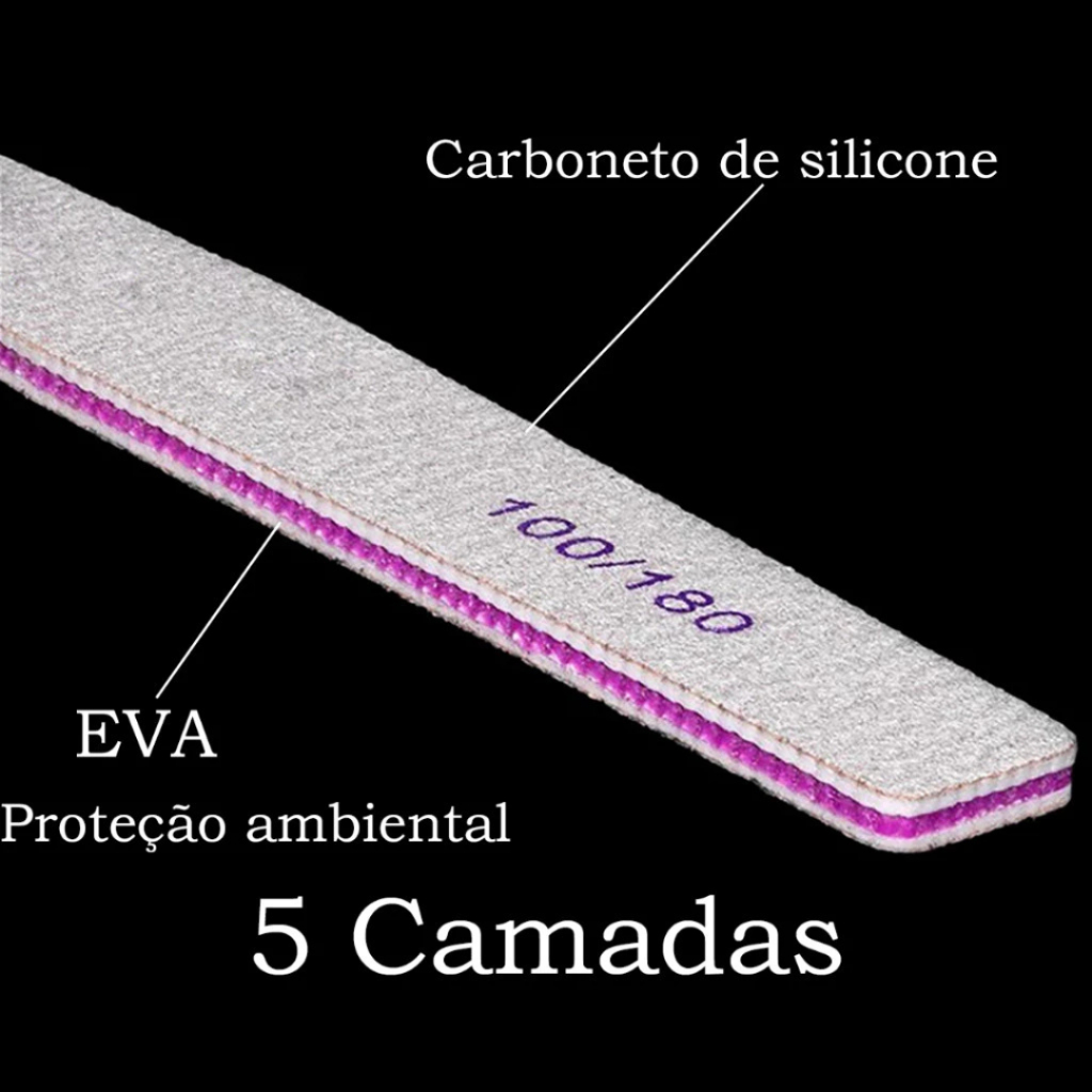 Kit Lixas 100/180 Profissional Lavável Boomerangue Banana Quadrada Caixão Uso Manicure Nail Designer