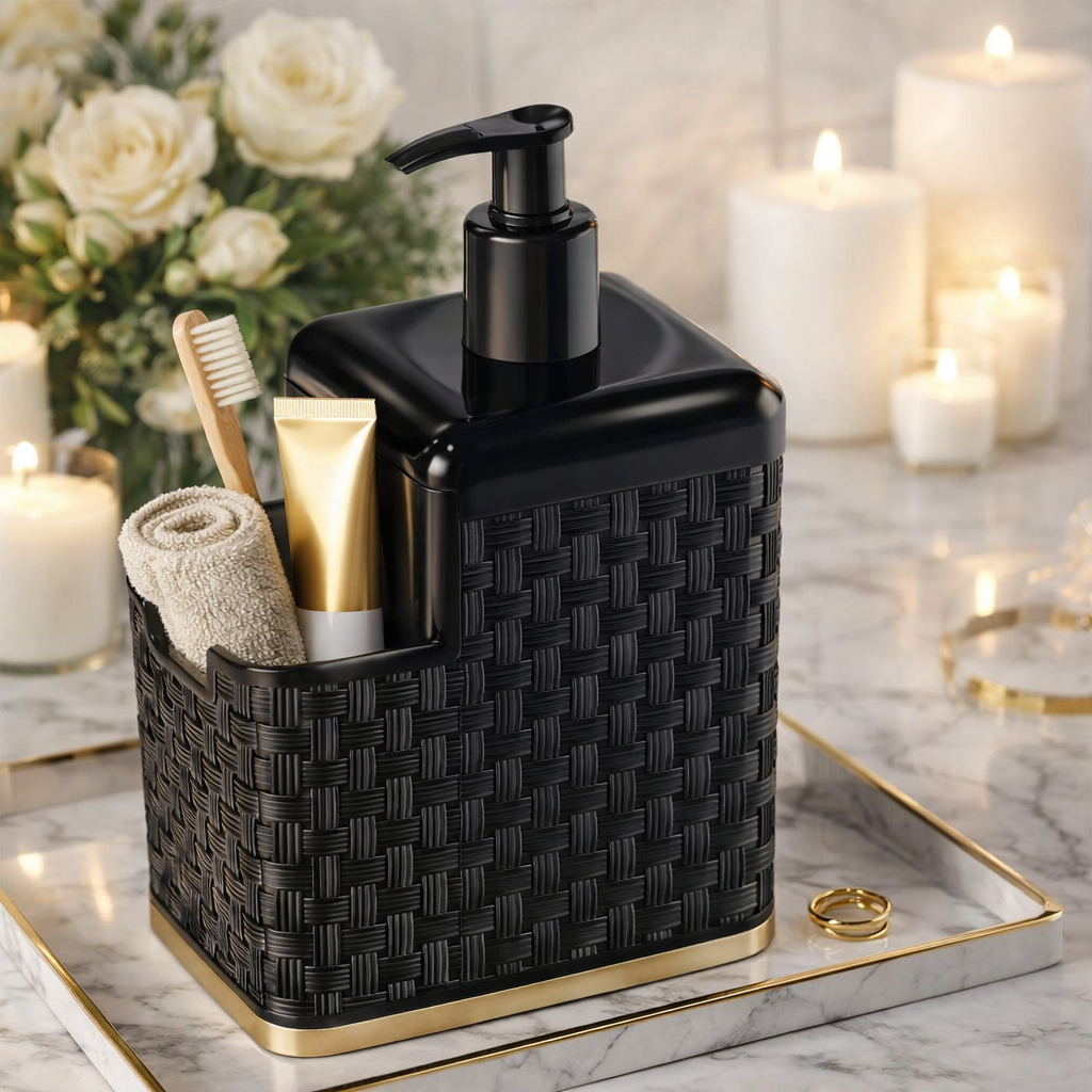 Kit Lixeira 7 Litros Rattan Pedal + Porta Detergente + Escova Sanitária – Sofisticação e Praticidade para seu Banheiro