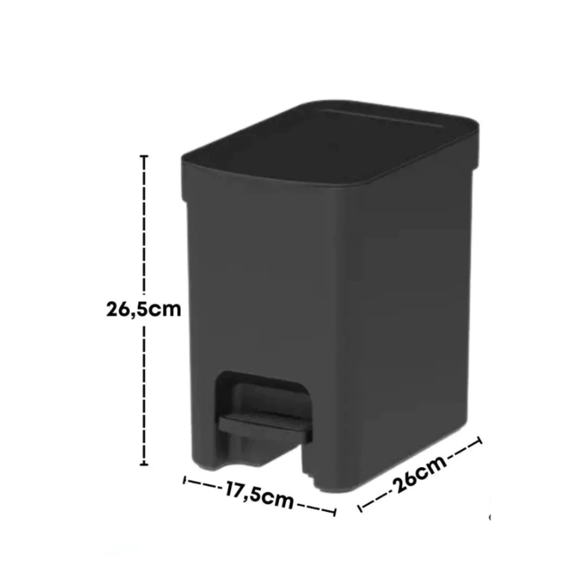 Kit Lixeira Trium Pedal 6l + Escova Sanitaria Dual Informações Técnicas Lixeira: Altura: 26,5 cm Largura: 17 cm Comprimento: 25,8 cm Peso: 0.535 kg Material: PP (Polipropileno) Capacidade: 6L Linha: Trium -------- Informações Técnicas Escova: Altura: 38 cm Largura: 11,5 cm Comprimento: 11,5 cm Peso: 0.246 kg Material: PP (Polipropileno) + Nylon Linha: Dual