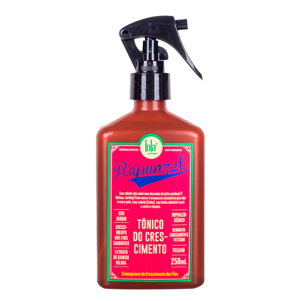 O Kit Lola Cronogramama de Crescimento Rapunzel proporciona uma sensação refrescante, enquanto penetra no couro cabeludo e estimula a micro circulação sanguínea. Ajuda a previne o envelhecimento capilar, hidratando profundamente os cabelos secos e quebradiços, proporcionando maciez e sedosidade. É especialmente formulada para fortalecer e estimular o crescimento saudável dos cabelos. Agindo como um fortalecedor de folículo capilar, fazendo com que a raiz fique forte e os fios tenham uma vida prolongada. O kit contém: 1- Shampoo Lola Rejuvenescedor Rapunzel 250ml 1- Spray Condicionador Lola Milk Rapunzel 250ml 1- Máscara De Tratamento Lola Rapunzel 450g 1 - Tônico Capilar Lola Crescimento Rapunzel 250ml Principais Ativos:Cafeína: Estimula o crescimento.Ginkgo Biloba: Fortalece a raiz.Babosa: Hidrata e acalma.Óleo de Rícino: Reduz quebra e fortalece os fios.Beneficios:Estimula o crescimento capilar;Fortalece os fios e a raiz;Reduz quebra e queda por fragilidade;Hidrata e melhora a saúde do couro cabeludo;Deixa os cabelos mais fortes e brilhosos.Modo de usar:Shampoo: Aplique no couro cabeludo, massageie e enxágue.Condicionador: Passe no comprimento e pontas, deixe agir e enxágue.Máscara de Tratamento: Utilize a Máscara 1 a 2 por semana após o shampoo, deixe agir alguns minutos e enxágue.Tônico: Aplique no couro cabeludo limpo, massageie e não enxágue.Sobre a marca: A Lola Cosmectis surgiu a partir de uma escolha: ser feliz! Levar a vida com bom humor, ainda que nada pareça dar certo. Nem mesmo o seu cabelo! A paixão da Lola são seus cabelos e o objetivo é oferecer linhas de tratamento capilar ideais para cada tipo de cabelo. Com seus produtos para cabelos especiais, a missão da Lola e dos seus cosméticos é uma só: permitir que você use sua cabeleira sem culpa, como deseja, com bom humor e ousadia.