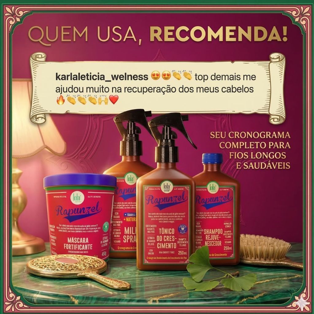 | Kit Lola Rapunzel Completo – Shampoo, Máscara, Tônico, Milk este produto | R$ 129,00 | 52% | 4.8/5 | 9 |