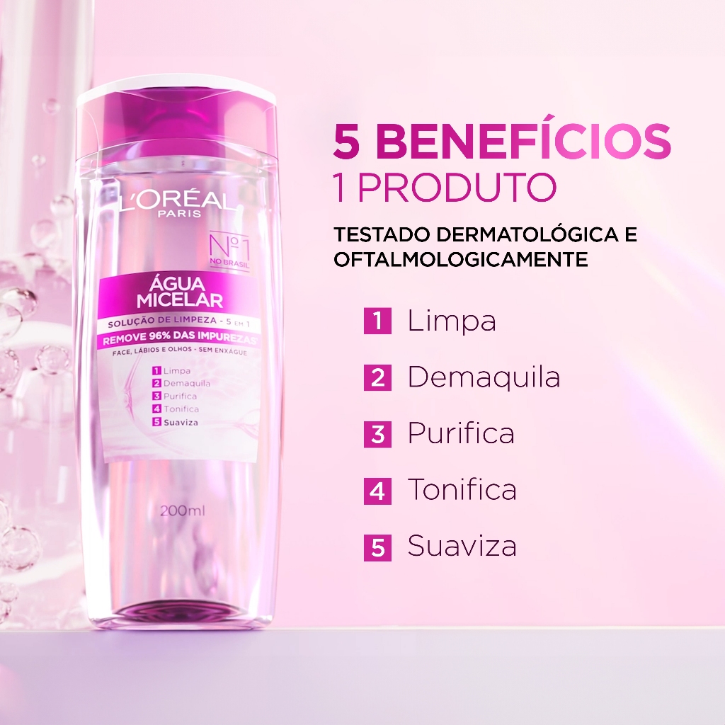 Água Micelar Loreal Paris Solução de Limpeza 5 em 1 - 200ml: A Água Micelar Solução de Limpeza 5 em 1 de L'Oréal Paris é composta por partículas chamadas micelas que agem como ímãs captando e eliminando as impurezas e a maquiagem da face. Podendo ser usada no rosto, lábios e olhos, a Água Micelar de L'Oréal Paris limpa, reequilibra, purifica e suaviza até as peles mais sensíveis. São 5 benefícios em um único produto. Para todos os tipos de pele, graças a sua fórmula não oleosa. 5 benefícios em um único produto: 1. Limpa 2. Demaquila 3. Purifica 4. Suaviza 5. Reequilibra Tecnologia: A Água Micelar de L'Oréal Paris é composta por partículas chamadas de micelas que agem como ímãs captando e eliminando as impurezas e a maquiagem da face. Fabricado no Brasil para a pele das brasileiras! Oftalmologicamente e dermatologicamente testado. Base BB Cream Loreal Paris Dermo Expertise FPS 20 30ml Tom: Clara: O BB Cream Dermo Expertise de L’Oréal Paris foi desenvolvido para todos os tipos de pele, pois hidrata e suaviza imperfeições com um efeito natural. Possui proteção UV e ação antibrilho, para uma performance que dura o dia inteiro. Minimiza a aparência de poros e ajuda a corrigir imediatamente as imperfeições da pele O BB Cream de L’Oréal Paris possui textura agradável com rápida absorção, leve toque de cor com acabamento natural e radiante. Um produto multifuncional 5 em 1: hidrata a pele, suaviza imperfeições, uniformiza e ilumina, possui ação antibrilho e proteção contra os raios UV, FPS 20. 1 produto, 5 benefícios: - Hidrata a pele - Uniformiza e Ilumina - Ação anti-brilho - Suaviza imperfeições - Protege dos raios UV com FPS 20 Tecnologia: Enriquecido com pigmentos minerais, o BB Cream 5 em 1 L’Oréal Paris minimiza a aparência dos poros de forma eficaz, corrigindo imediatamente as imperfeições da pele. Possui Perlite, um ativo reconhecido por sua capacidade de absorver altas concentrações de água e óleo. Isso reduz imediatamente o brilho enquanto matifica a pele por mais tempo. O kit contém: - Água Micelar Loreal Paris Solução de Limpeza 5 em 1 - 200ml - Base BB Cream Loreal Paris Dermo Expertise FPS 20 30ml Tom: Clara