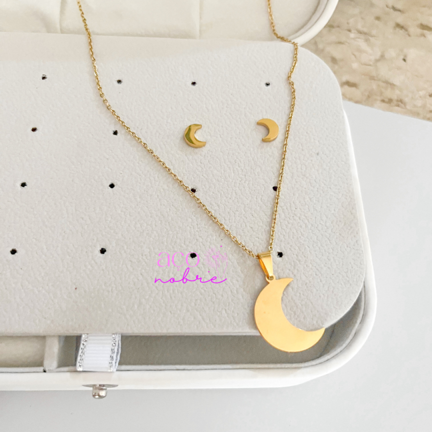 Kit Lua Colar e Brinco Aço Inox Não Escurece