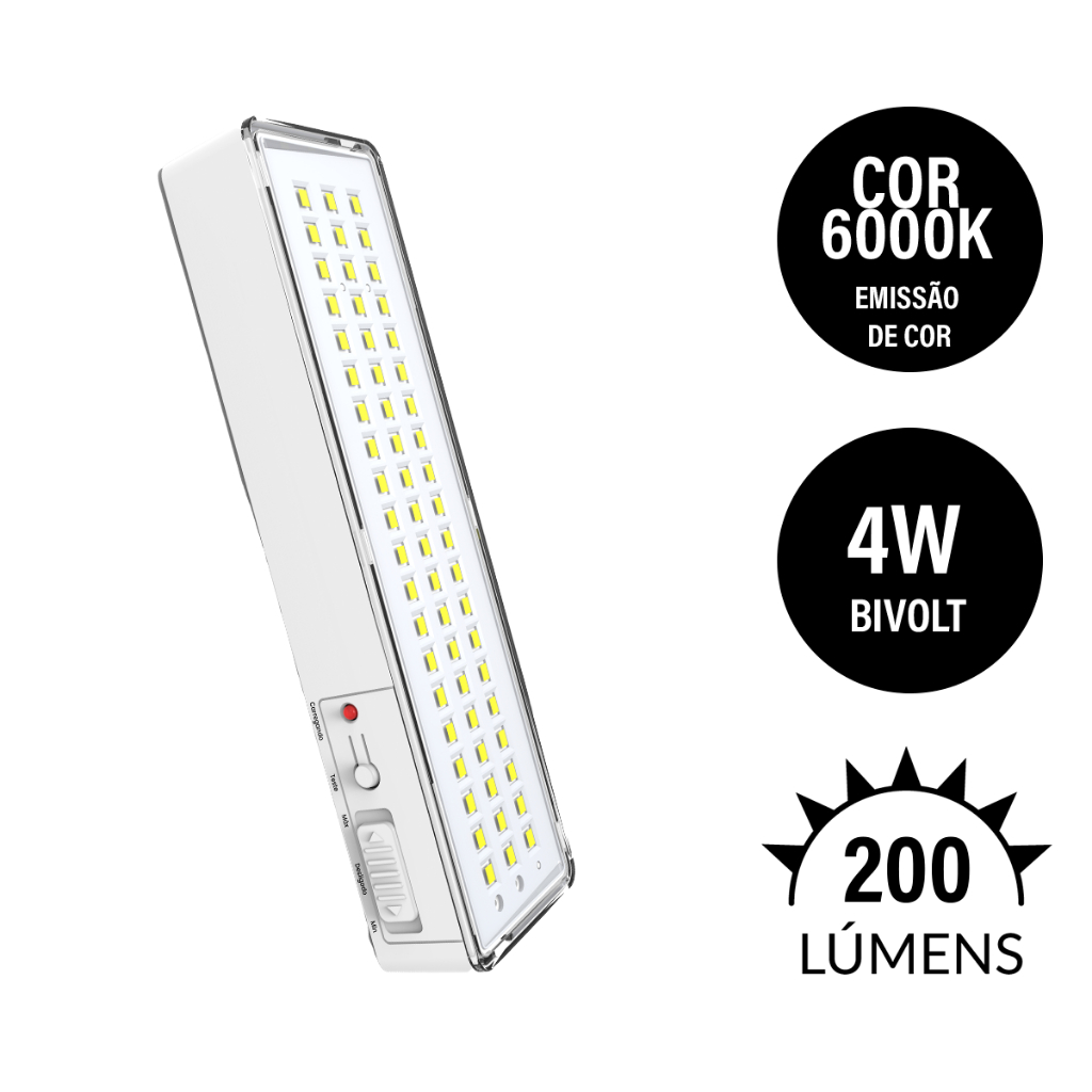 Kit Luminaria led Emergencia 4w 5x17cm 6000k Branco Frio Bivolt Branco Seed