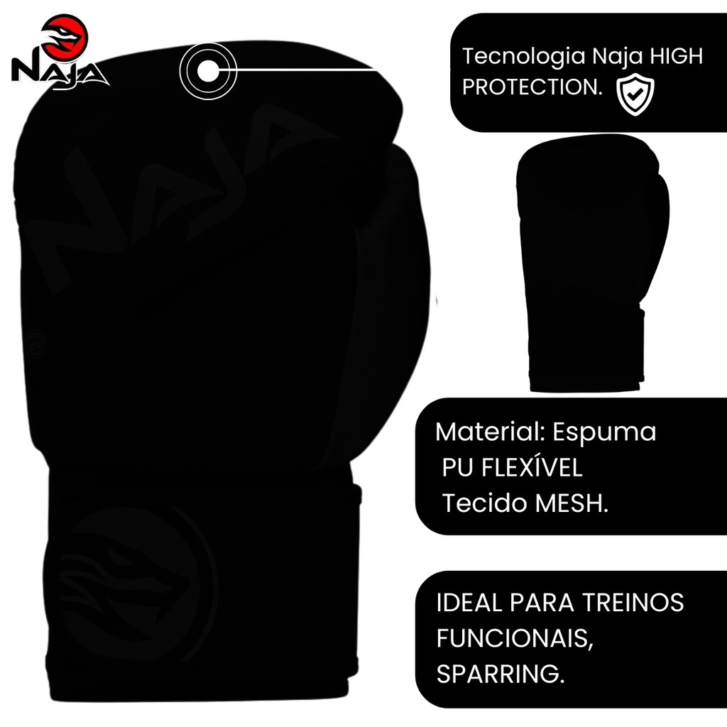 | Kit luva Boxe Muay Thai Naja Extreme + Bandagem + Protetor Bucal este produto | R$ 359,90 | — | 4.8/5 | — |