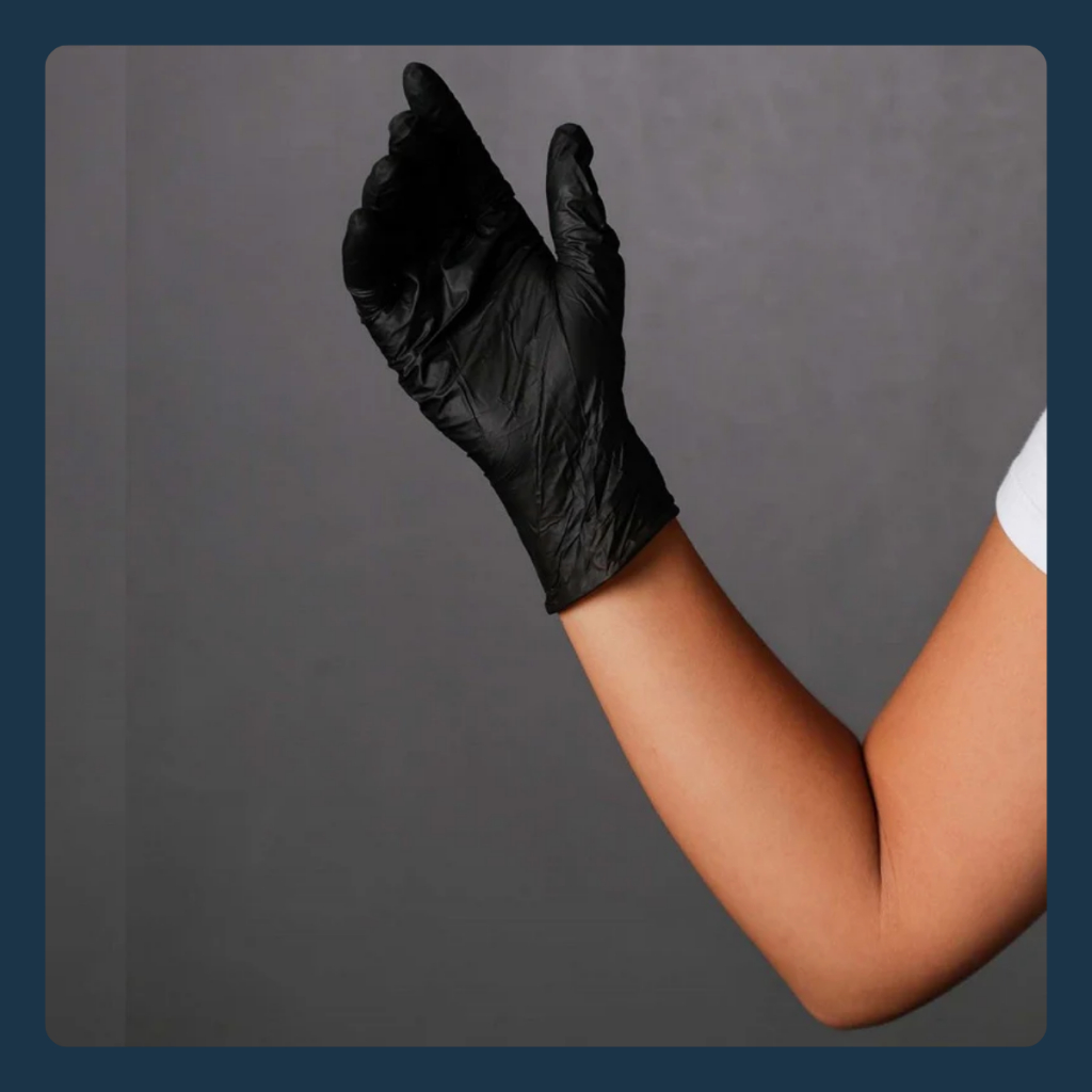 Kit Luva Nitrilica Preta 150 Máscara Descartável Preta Profissional Resistente Ambidestro Clip Nasal