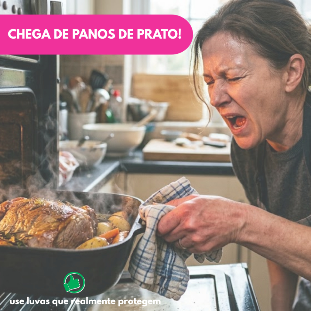 Kit Luva Térmica Silicone Com Forro Cozinha Forno E Fogão Segurança Proteção Punho