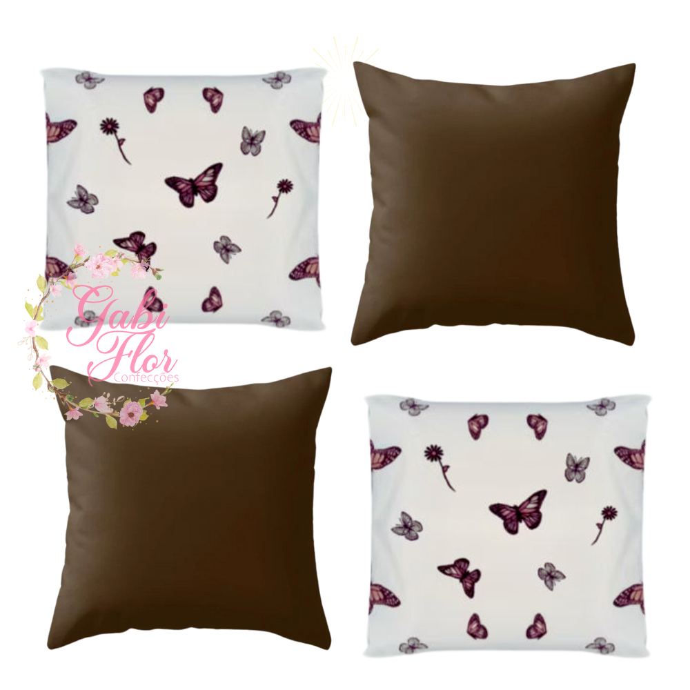 kit Luxo 4 Capas de Almofadas Borboletas 45 x 45cm Decoração Sala/Quarto
