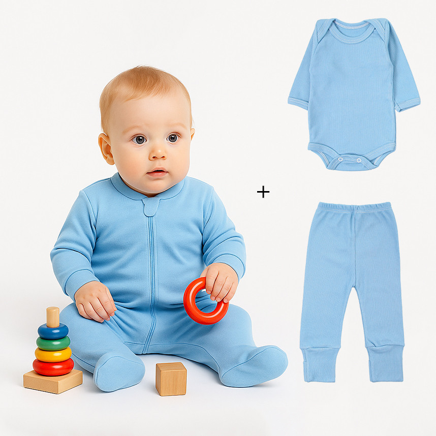 Kit Macacão De Bebê Menino Smoby Com Body E Mijão 03 Peças