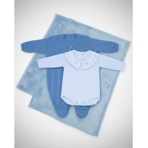 Kit macacão Trançado Azul Claro e Body Gola Bordada DU