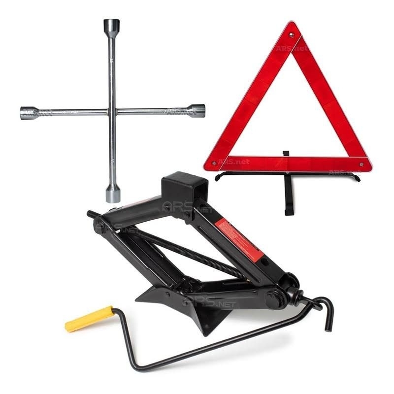 kit macaco + chave de roda Cruz + Triângulo de sinalização