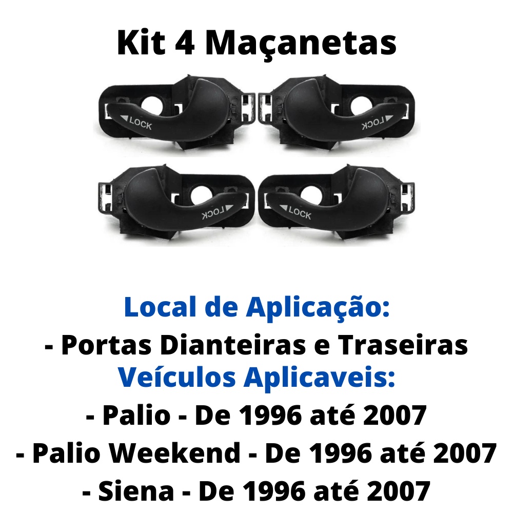 Kit Maçaneta Interna Dianteira E Traseira Palio De 1996 A 2007