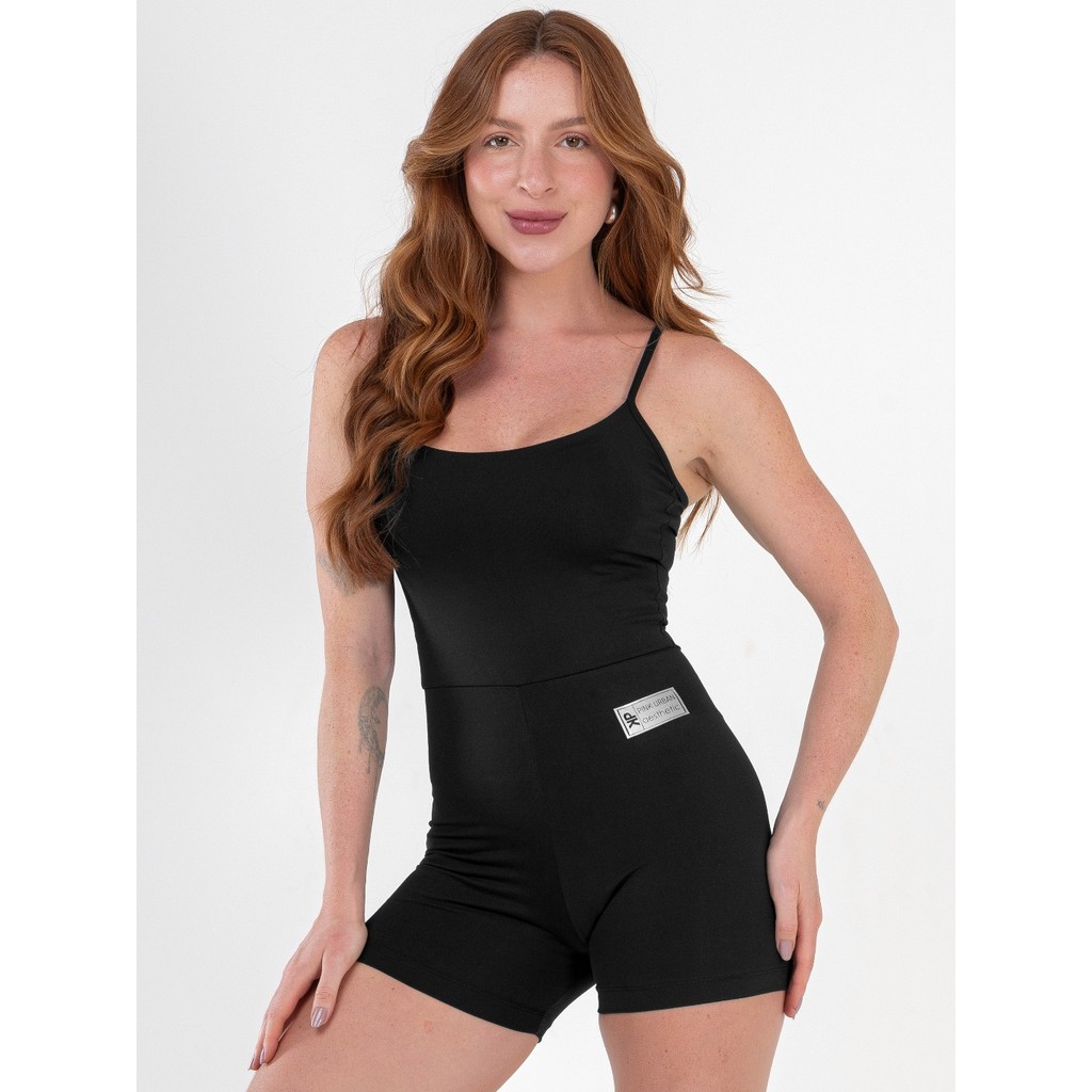 Kit Macaquinho Alcinha Costa Nua + Conjunto Fitness Top Alça Short Meia Coxa Zero Transparência