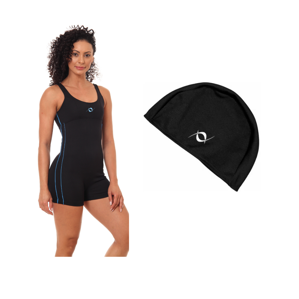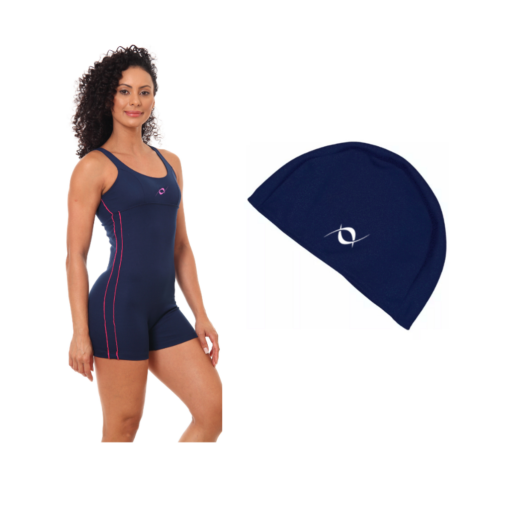 Kit Macaquinho Helanca Natação Hidroginástica Com Touca De Tecido