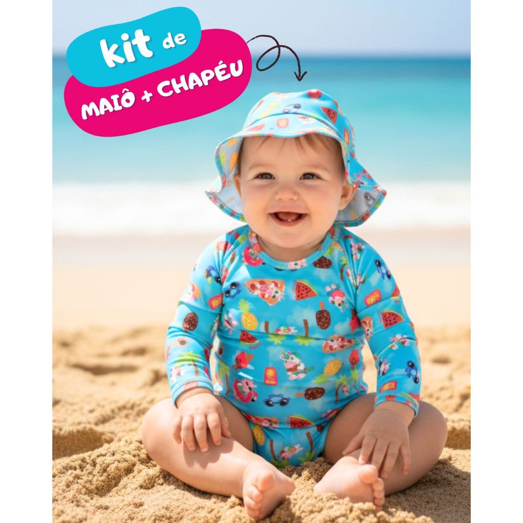 Kit Maiô Biquíni Bebê Infantil UV 50+ Chapéu Praia