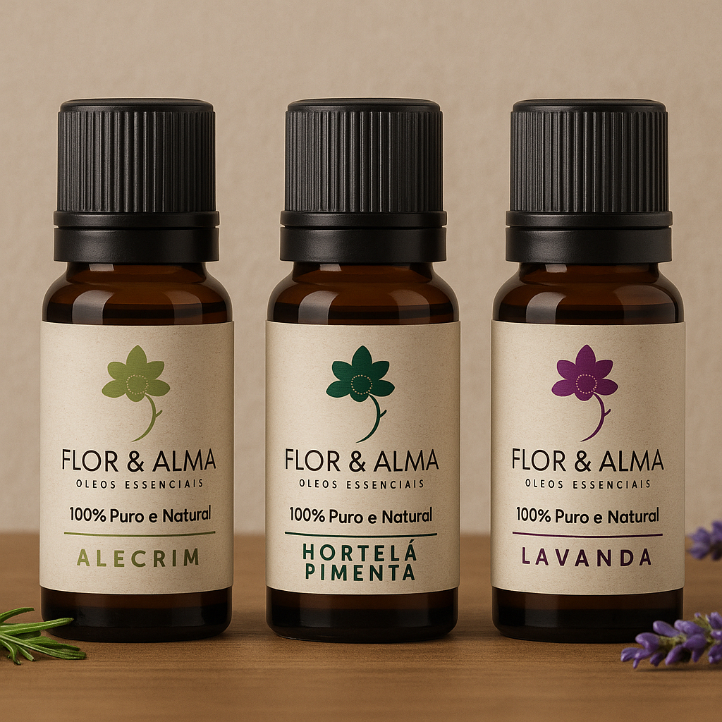 Kit Mais Pedido 3 óleos essenciais Alecrim Lavanda e Hortelã Pimenta