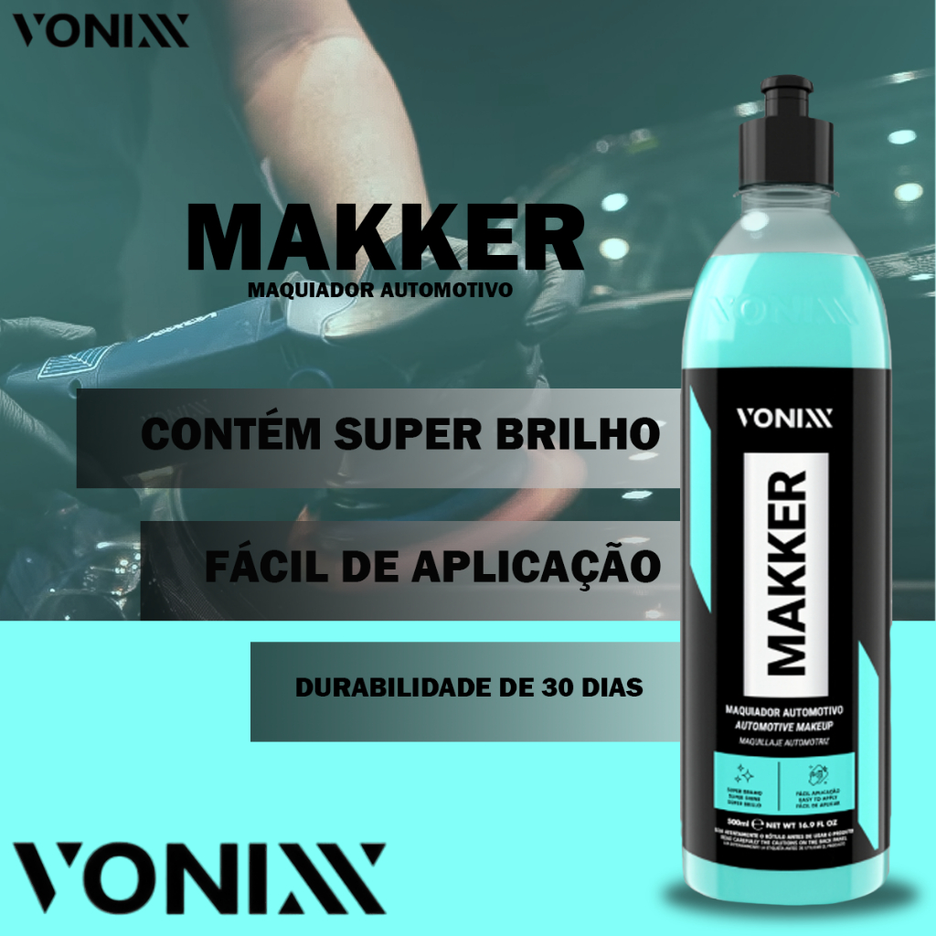 MAKKER MAQUIADOR AUTOMOTIVO VONIXX 500ML TOALHA MICROFIBRA 40X40 230GSM APLICADOR ESPUMA VONIXX DESCRIÇÃO: É uma maquiagem automotiva desenvolvida exclusivamente para preencher pequenos defeitos e renovar pinturas queimadas ou desbotadas. Pode também ser utilizado para alcançar brilho máximo na pintura. Além de maquiar, deixa um toque extremamente liso e garante proteção de 30 dias. MODO DE USO: - Agite bem antes de usar. - Aplique uma pequena quantidade utilizando um aplicador de espuma ou microfibra fazendo movimentos uniformes - Aguarde a secagem entre 5 e 30 minutos - Remova o produto utilizando uma toalha de microfibra limpa e seca até obter o brilho desejado. - Não nos responsabilizamos pela má instalação ou mau uso do produto, faça a instalação com profissionais especializados. - Atenção: As compras realizadas em nome de Pessoa Jurídica estão sujeitas a cobrança de ICMS, conforme Protocolo ICMS 41, de 4 de Abril de 2008. Caso você tenha dúvidas sobre o percentual a ser aplicado, consulte a Cláusula Segunda, §1° do referido Protocolo. - Em caso de dúvidas use o campo de Perguntas. Fotos meramente Ilustrativas. Caso tenha dúvidas quanto a utilização deste produto, favor consulte-nos pelo campo de perguntas. CÓD. REFERÊNCIA: 015863