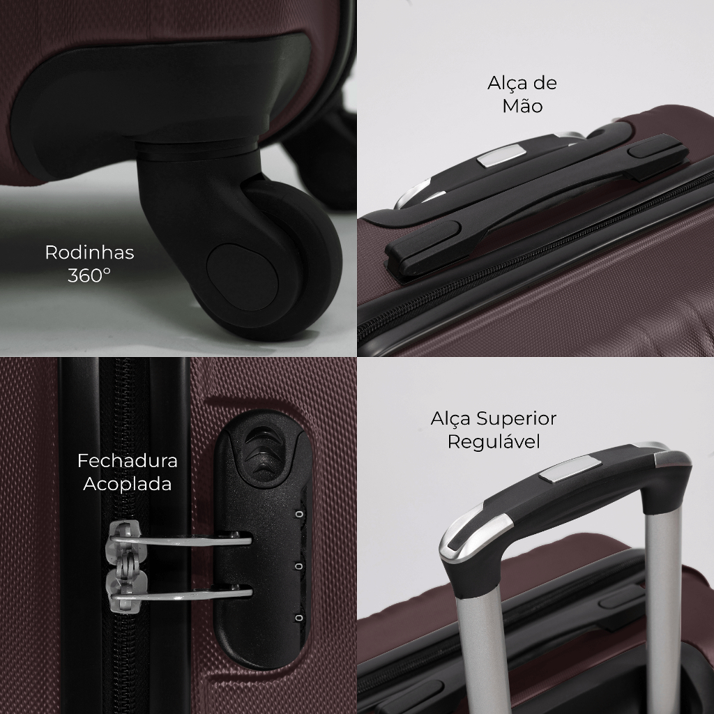 Kit mala de viagem ABS pequena 10kg, média e grande 4 rodas 360º Londres Swiss Move