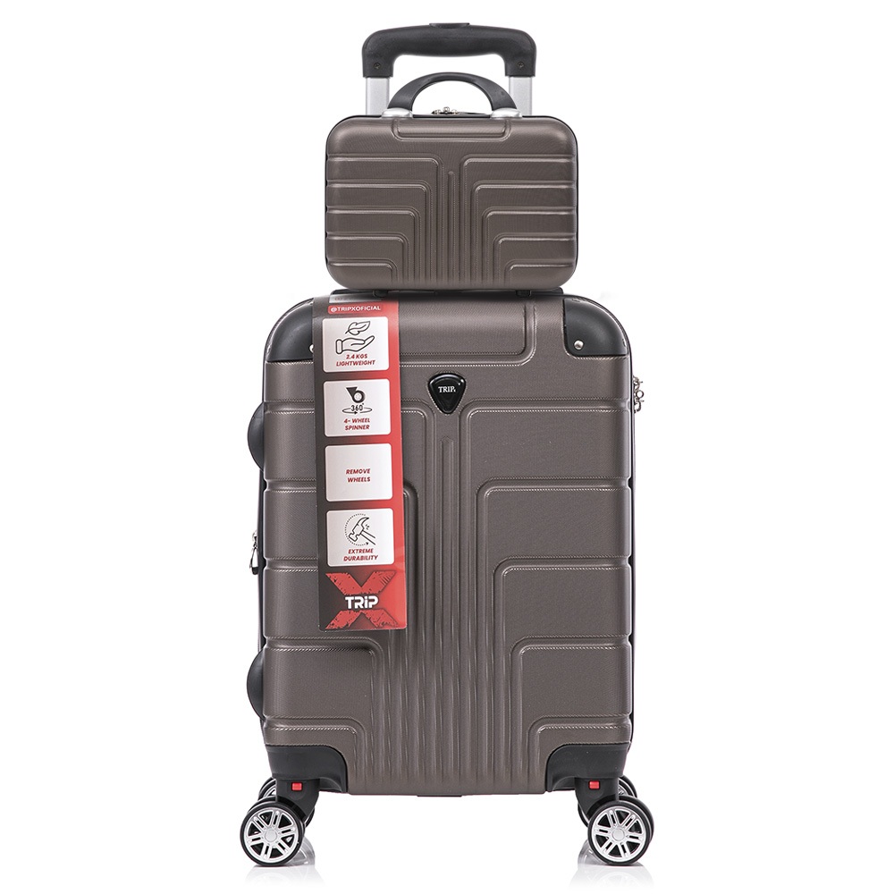 O Kit Mala de Viagem Bordo Pequena 10kg e Frasqueira P Tripx é a escolha perfeita para quem busca elegância e praticidade em viagens curtas. A mala, no padrão ANAC, garante leveza e espaço otimizado, enquanto a frasqueira oferece organização impecável para seus itens essenciais. Um conjunto sofisticado e funcional, ideal para viagens com estilo. Características Mala Bordo; Ocasião: Viagem, Passeio Alça de mão emborrachada Haste ajustável em 2 níveis Descanso lateral para não riscar a mala Cadeado Flat TSA Zíper expansivo Zíper anti-furto Rodinhas removíveis com giro de 360° Bolsos internos com redinha Alça em X interno para segurar as roupas Divisória interna Especificações Mala Bordo; Material: ABS Dimensões: 55 x 35 x 25cm (A x L x P) Capacidade total: 30L Peso suportado: 10kg Características Frasqueira P; Ocasião: Viagem, passeio Alça de mão emborrachada Alça carona Descanso para apoiar no chão e não riscar a mala Divisória interna Bolso interno em redinha Fecho: Zíper com espaço para cadeado Especificações Frasqueira P; Material: ABS Dimensões: 24 x 30 x 14cm (A x L x P) Capacidade: 10L