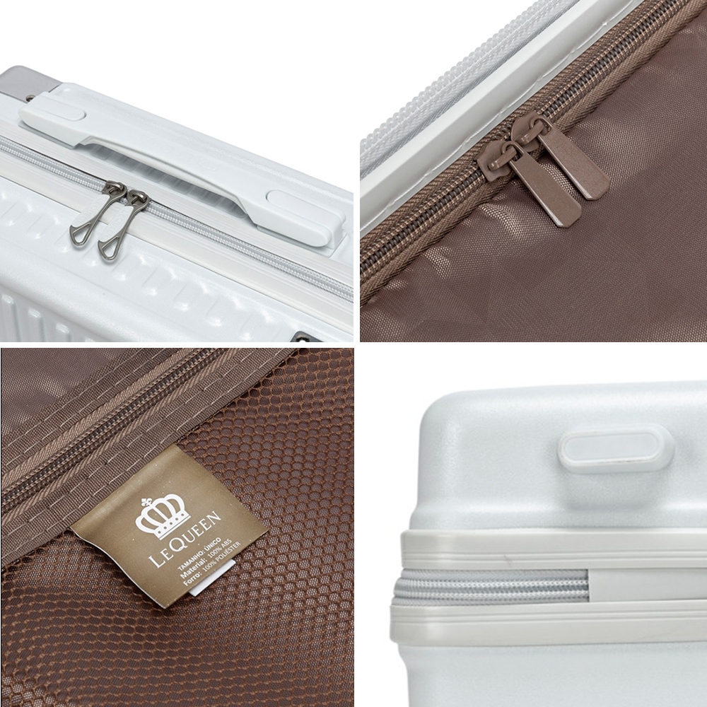 Ficha técnica Mala: Medidas (AxLxP):47x33x25 Altura com alça: 90 cm Peso: 2,700 KG Capacidade: 38 Litros Ficha técnica Frasqueira: Medidas (AxLxP): 21x31x7 Peso: 0,700 KG Material: Abs Forro: Poliéster Características Mala: Mala confeccionada em ABS Forro em poliéster Rodinhas duplas com giro de 360° Cadeado embutido Puxador com logo personalizado Bolso interno telado com zíper Fechamento em zíper Características Frasqueira: Frasqueira de 12 polegadas Confeccionada em ABS reforçado Forro personalizado em poliéster Bolso telado com zíper Possui elástico para acoplar no puxador da mala Alça de mão Fechamento em zíper Cuidados de conservação: Para limpeza, utilize apenas pano úmido ou esponja macia e sabão neutro Evite carregar excesso de peso Embalar objetos cortantes para não perfurar *3 meses de garantia* Sobre a marca: A mala de viagem Lequeen é perfeita para sua próxima viagem. Leve, resistente e muito prática. Além de segura contendo cadeado embutido na mala, deixando seus itens mais protegidos em suas viagens.