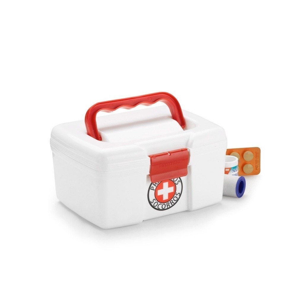 PRODUTOS A PRONTA ENTREGA!!! ENVIOS EM 24HS Kit com duas Maletas para medicamentos Com alça e fecho na cor vermelha para acondicionar todos os primeiros socorros e medicamentos da sua casa Produzido em polipropileno - pp - virgem, com pigmento branco Atóxico e reciclável, alta resistência por flexão e boa estabilidade térmica Dimensões 17 X 12 X 9 CM 22 X 16 X 10 CM