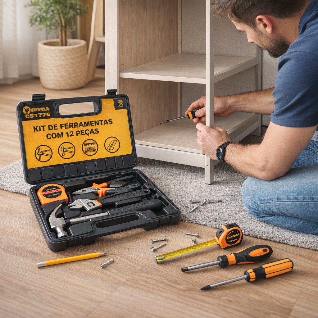 O Kit de Ferramentas com 12 peças é a solução ideal para quem busca praticidade, organização e eficiência em manutenções domésticas, pequenos reparos, instalações e uso geral. Acompanha uma maleta rígida e resistente, que facilita o transporte e mantém todas as ferramentas organizadas e protegidas. As ferramentas possuem acabamento reforçado, proporcionando boa durabilidade, segurança e conforto durante o uso. Indicado tanto para uso residencial quanto para profissionais que precisam de um kit compacto, funcional e fácil de transportar. PRINCIPAIS CARACTERÍSTICAS: - Modelo: OI5776 - Quantidade de peças: 12 - Material das ferramentas: metal e plástico reforçado - Maleta rígida com encaixes internos - Ferramentas organizadas e de fácil acesso - Ideal para manutenção, reparos, montagem e uso doméstico - Produto prático, compacto e funcional CONTEÚDO DO KIT: - Maleta plástica resistente - Alicate universal - Estilete retrátil - Chave inglesa ajustável - Martelo - Trena métrica - Chaves de fenda - Chaves Phillips - Pontas e acessórios conforme o kit original