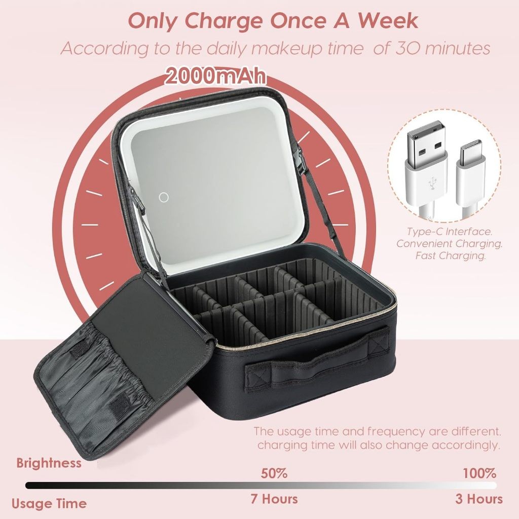 SEJA BEM VINDO A YL BAZAR Perfeito Para Armazenamento de Maquiagens ----------------- ATENÇÃO ---------------- NÃO ACOMPANHA MAQUIAGENS DENTRO Visão Geral Combinação perfeita de praticidade, durabilidade e estilo, nossa Maleta de Maquiagem com LED é a escolha ideal para realçar sua rotina de beleza, seja em casa ou em viagens. ----------------------- Principais Características -------------------------- - Durabilidade Excepcional: Construída com material impermeável de alta qualidade, projetada para resistir ao tempo enquanto mantém a elegância. - Espelho com LED: Equipado com luzes LED ajustáveis em três tonalidades, garantindo uma visualização perfeita em qualquer ambiente. - Organização Inteligente: Amplos compartimentos internos para manter todos os seus produtos de beleza organizados e acessíveis. ️- Portabilidade e Versatilidade: Design compacto com uma alça prática, ideal para viagens e uso diário. - Segurança e Proteção: Fechamento seguro para proteger seus itens de beleza de quedas e vazamentos. ------------------- Conteúdo Incluso ---------------------- 1 Maleta de Maquiagem com LED e espelho 1 Cabo Tipo-C 1 Manual de Instruções Especificações Técnicas - Fonte de Energia: Carregamento via USB - Material: PU, robusto e durável - Tensão Operacional: Até 4V - Guia de Uso Facilidade no uso com ajuste de luz no espelho integrado, ideal para preparar-se para qualquer ocasião com perfeição. Manutenção e Cuidado Limpeza simples com um pano úmido, evite exposição prolongada ao sol para manter a integridade do produto. Adquira sua Maleta de Maquiagem com LED e transforme sua rotina de beleza com elegância e praticidade. Uma nova maneira de expressar sua beleza interior está à sua espera!