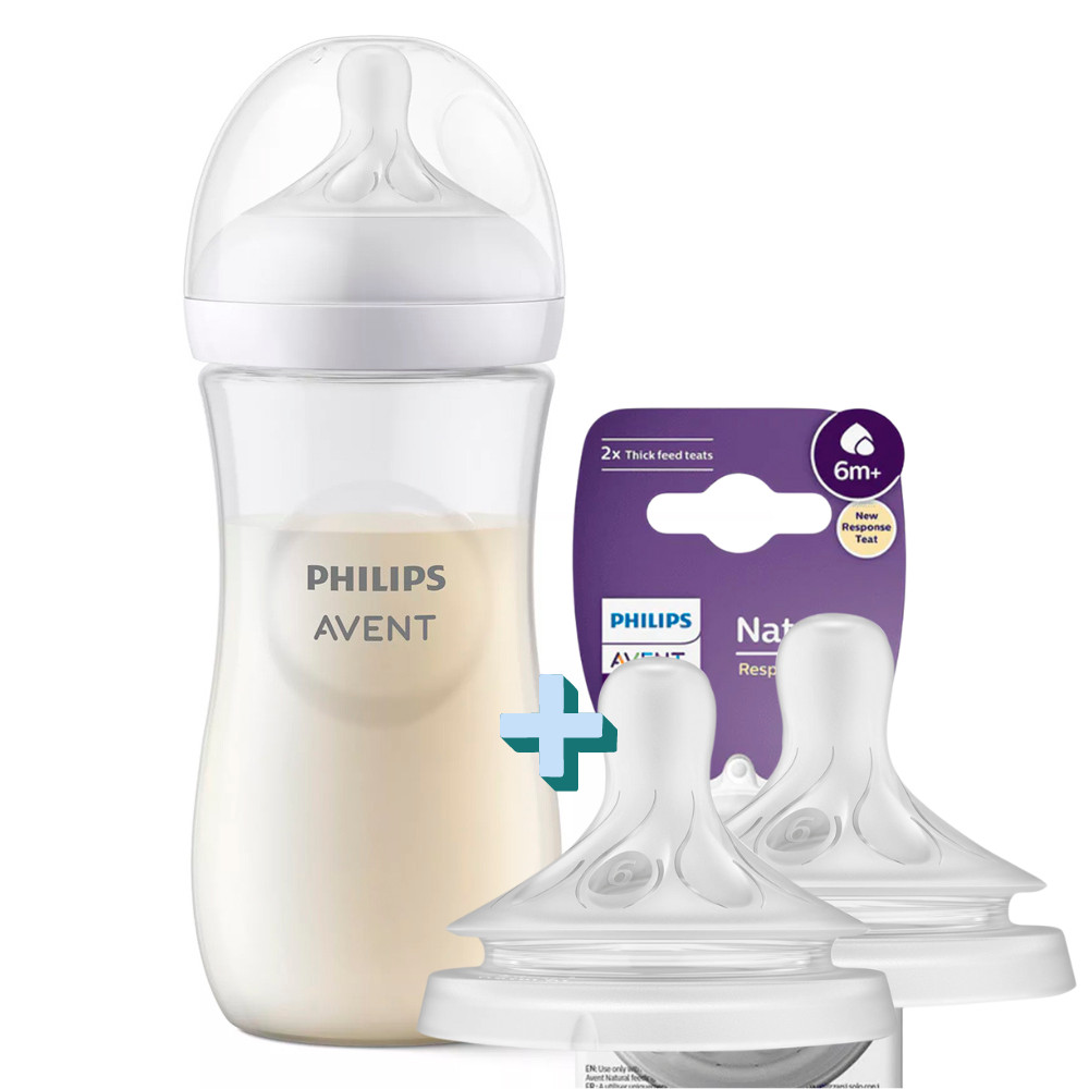 Kit Mamadeira Avent 330ml + 2 Bicos Nº6 6m+ Líquido Espesso
