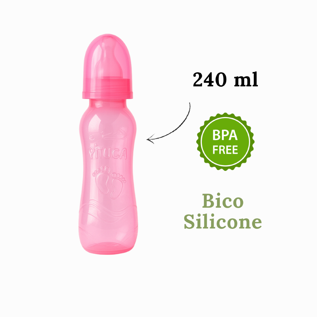 ENVIAMOS NO MESMO DIA !! LOJA SEGURA. KIT COM 3 MAMADEIRAS Sendo: 1 mamadeira de 240 ml 1 mamadeira de 150 ml 1 mamadeira de 80 ml Cada mamadeira contém 5 peças: 1 Frasco 1 Capuz 1 Tampa 1 Disco vedação produzidos em Polipropileno. 1 bico de silicone atóxico e inodoro. Composição: * FRASCO - Fabricado em POLIPROPILENO, com cantos arredondados para total higiene e limpeza, com graduação externa, totalmente cristal, inquebrável, atóxico e indeformável, resistente ao calor de até 120º C; * CAPUZ PROTETOR - Em POLIPROPILENO, com vedação total para o bico, servindo também para dar chás e sucos; * TAMPA COM DISCO VEDADOR - Ambos em POLIPROPILENO; * BICO - Fabricado em SILICONE, super macio, adaptando-se perfeitamente aos lábios. Produto Certificado pelo INMETRO e BPA FREE Produto Livre de bisfenol-A. Mamadeira com Disco Anti-vazamento Gargalo Higiênico, não acumula resíduos; de fácil limpeza e sem abas cortantes As mamadeiras da Pituca são certificadas pelo INMETRO. A mamadeira ideal para seu bebê! Estamos ansiosos para começar a preparar seu pedido com muito carinho!! Aguardamos sua compra Qualquer dúvida é só mandar uma mensagem…