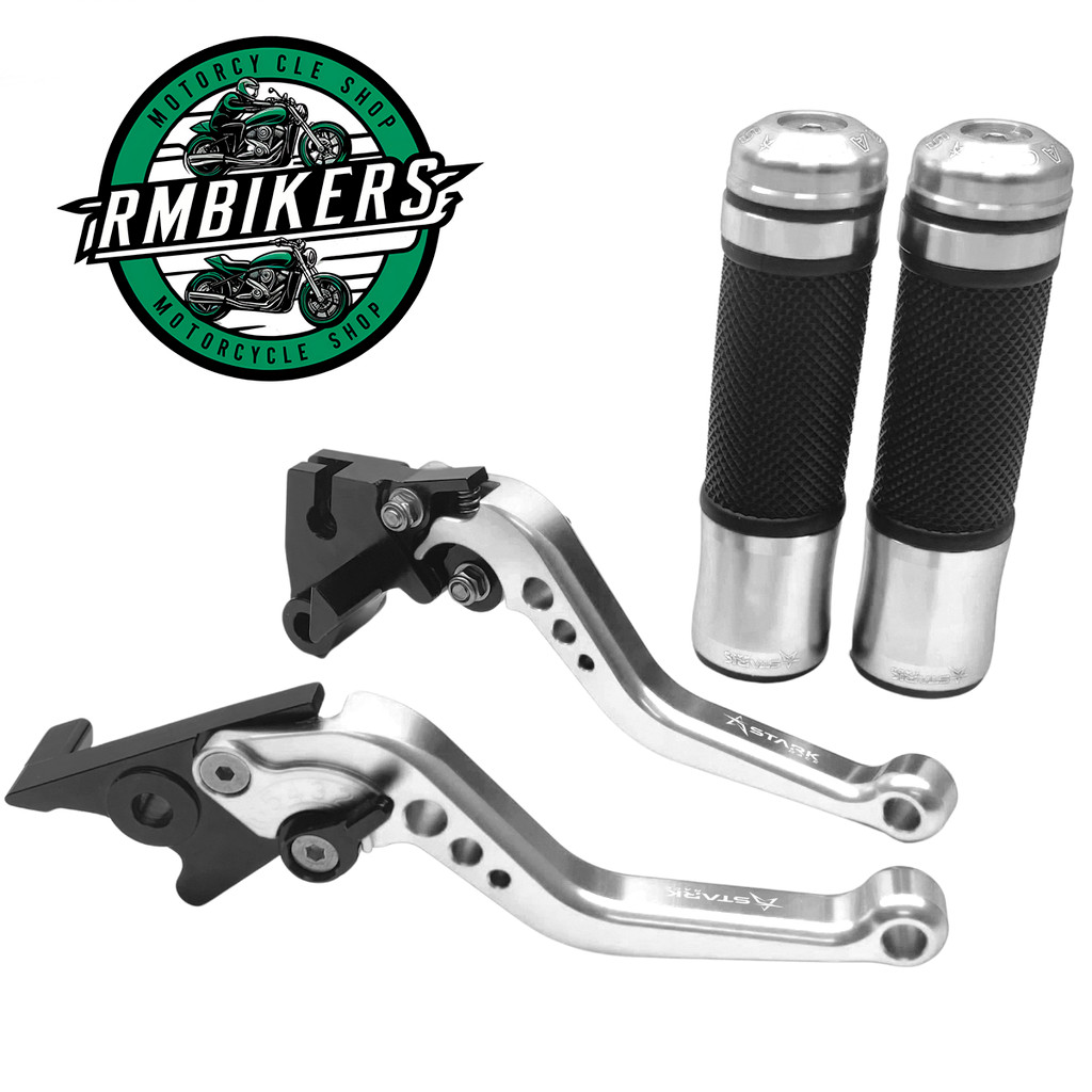 Aplicação: NINJA 250R 2009 a 2012 NINJA 300R/Z300 2013 a 2016 NINJA 400R/Z400 2018 a 2021 VERSYS 300X 2017 a 2022 Z125 (Ninja 125) 2017 a 2020 Z250SL 2016 a 2017 Manopla Apolo Stark Race: -Manopla Esportiva Vazada; -Manopla em borracha; -Alumínio Anodizado colorido de alta resistência; -Comprimento 12cm; -Aplicação universal para guidão 22 mm 7/8. Manetes Esportivos: -Material: Alumínio 6061 T6 Anodizado; -Processo de fabricação: Usinagem com maquina CNC para precisão; -Parafusos em aço inoxidável; -6 Regulagens; Medidas: Peso: 250g Altura: 1,5cm Largura: 1,5cm Comprimento: 14,5cm Produtos inclusos no anúncio: -1 Par de Manopla Apolo; -1 Par de Manete esportivo. Garantia de três meses (90 dias) inclusa. Atenção! A garantia de 90 dias não cobre problemas de má aplicação ou mal uso, por isso recomendamos que o produto seja instalado por um profissional especializado. O tom das peças pode variar levemente de acordo com o lote (anodização), imagem meramente ilustrativa.